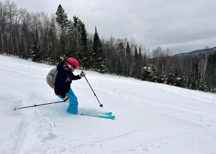 J’ai visité la station au milieu de la dernière semaine de mars. À 9h00 le matin, le soleil avait déjà atteint le point de congélation dans la vallée pendant que j’enfilais mes bottes de skis dans le stationnement. Cela signifie que tout au long de la journée, les conditions de glisse varieront en fonction du mercure qui montera et aussi selon l’altitude. Deux facteurs qui joueront un rôle déterminant sur la qualité de la neige. Il faut savoir adapter son style de ski à des conditions de neige parfois très changeantes, mais une chose est sûre : le plaisir est toujours au rendez-vous.