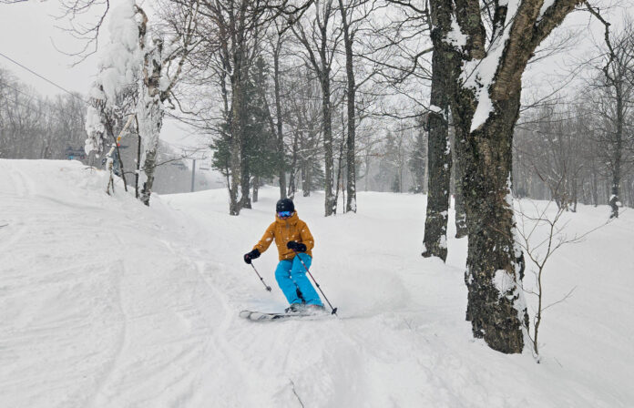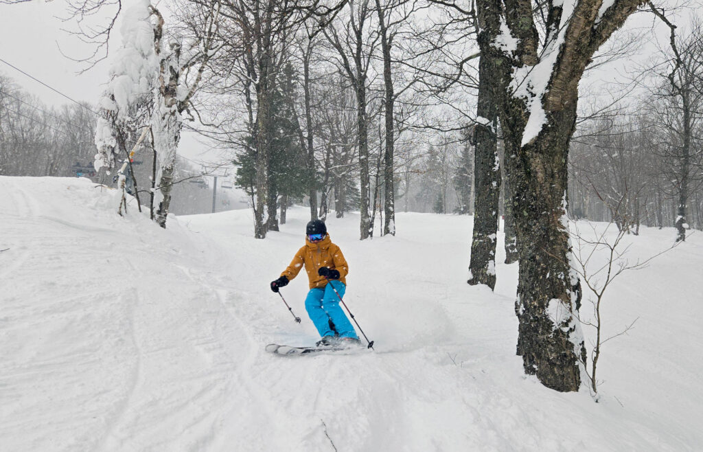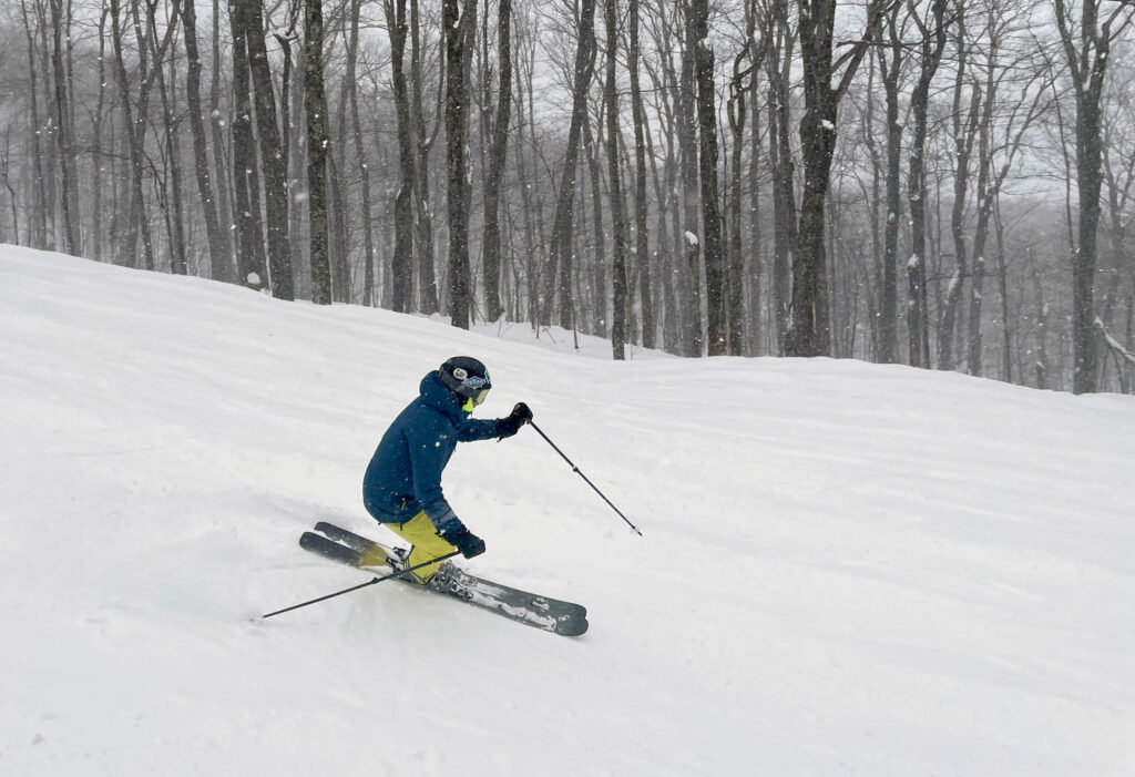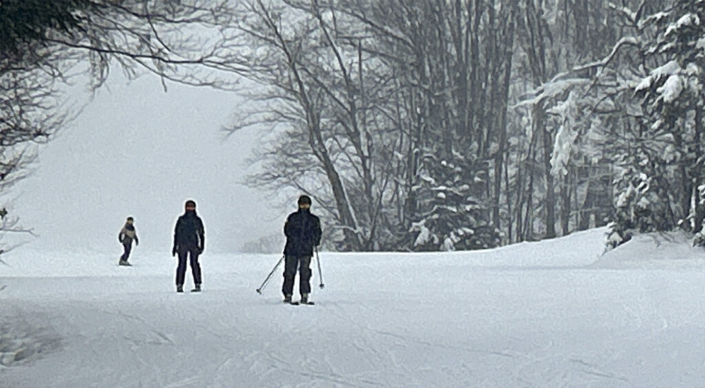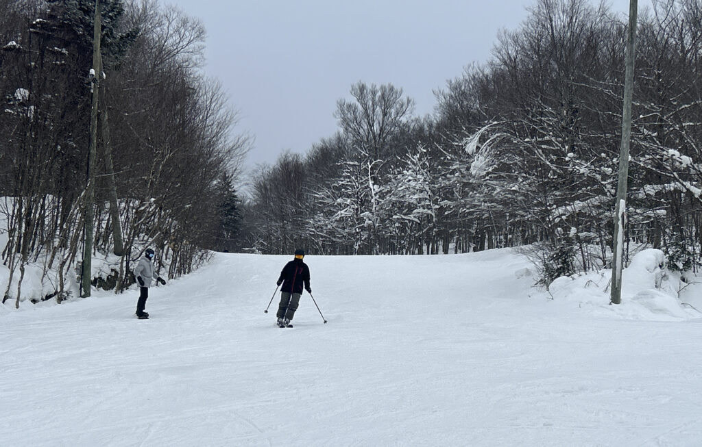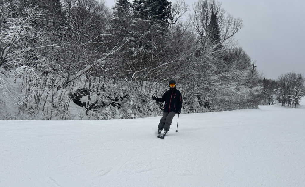 Nous avons skié toutes les pistes ouvertes, y compris les pistes noires pour experts. L’ajout de La Laurentide, La Balade et Le Premier Défi ont fait plaisir aux clients. La neige a continué de tomber et la surface s’adoucir au fil de la journée. C’est tellement agréable de skier dans le silence alors que la glisse est douce sous les spatules.