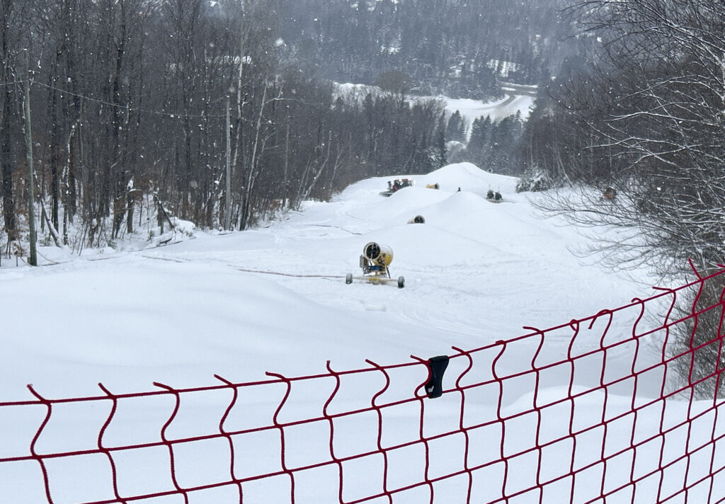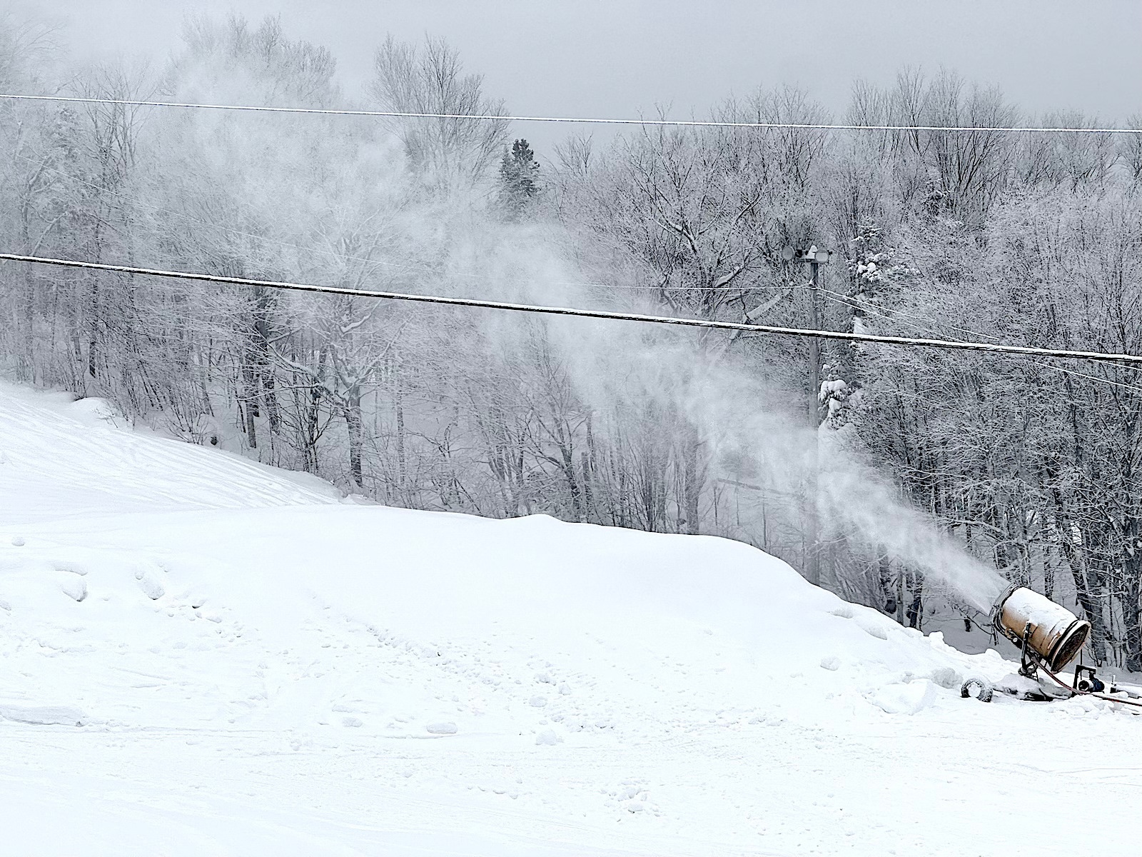 Malgré la température douce, les canons soufflent abondamment! On peut en apercevoir un peu partout dans la station. Je ne vous cacherai pas que j’ai hâte que ma piste préférée, la Laurentienne, soit prête!