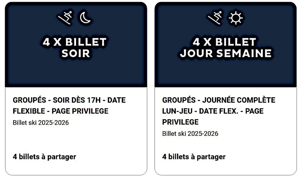 À partir du 19 décembre 2025 et pour toute la saison de ski, obtenez jusqu’à 42% de rabais sur les lots de 4 billets et d’autres économies sur les billets à date fixe.