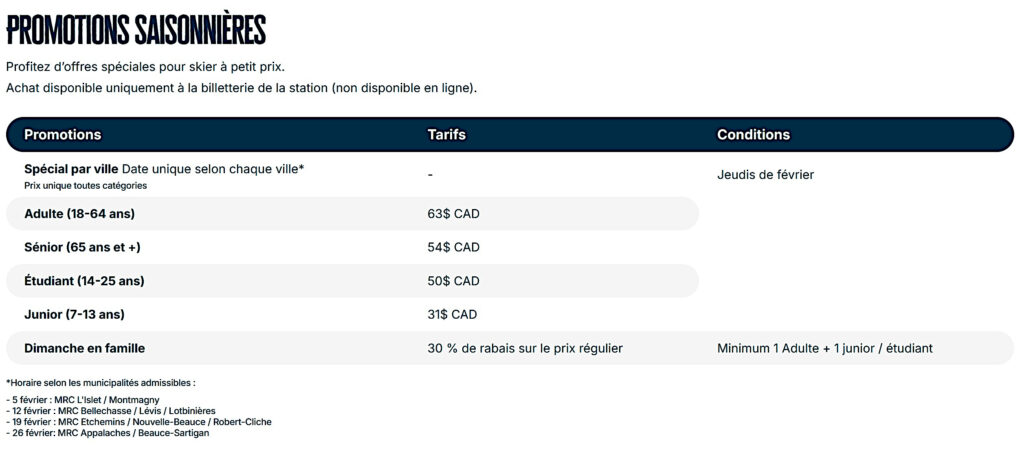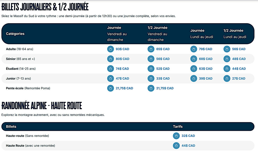 Le billet pour le télésiège IIo (celui de la Zone Famille): À 26 $ + taxes.