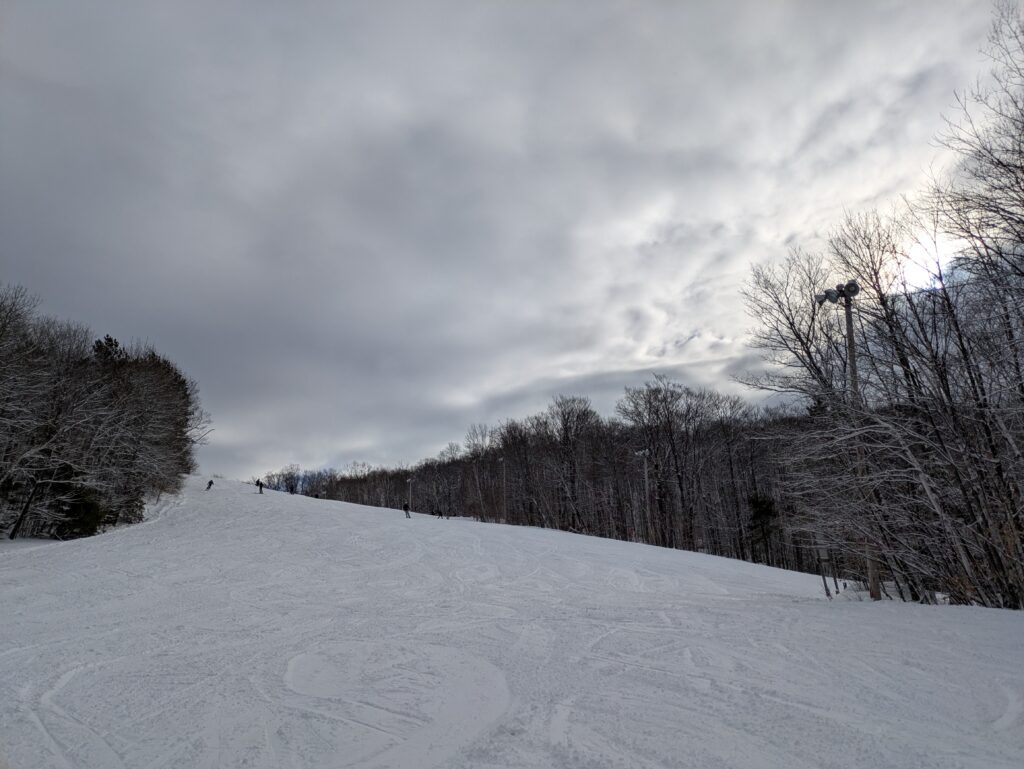 À deux reprises, j’ai vu une dameuse remonter un canon à neige dans une piste et ensuite des employés de la montagne en faire l’installation. Il semble donc que l’enneigement se poursuivra!