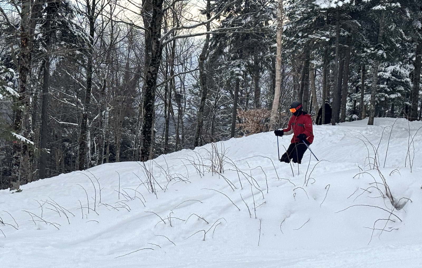 La neige durcie de la récente pluie bien maintenant bien recouverte, la plupart des bordures de pistes et sous-bois sont à nouveau praticables, au grand plaisir de plusieurs!