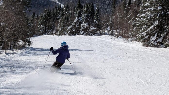 Oh, les conditions parfaites à Stoneham aujourd’hui! Il n’a suffit que d’une dizaine de centimètres de nouvelle neige pour faire de ma sortie un pur bonheur. Même en après-midi, même dans les pistes les plus pentues, même en télémark, la glisse demeure excellente du début à la fin. Ajoutez à cela une température avoisinant le point de congélation et un soleil pétant d’intensité… vous voyez ce que je veux dire. Parfaite, la sortie à Stoneham!