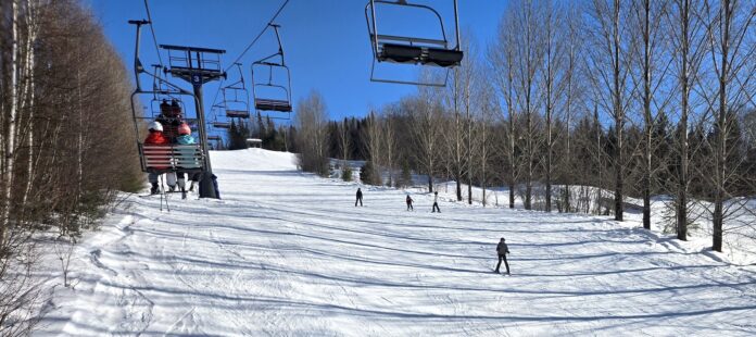 La pente-école grouille d’action toute la journée! Ma conjointe a invité son neveu, un adolescent de 15 ans qui n’a jamais fait de ski. Après un avant-midi productif passé dans la pente-école puis dans la piste familiale l’Hirondelle, il a ensuite pu skier plusieurs pistes offrant plus de défi avec une confiance grandissante.