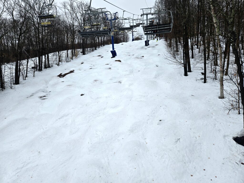 À la base du versant nord avec la remontée de l’Expo.Une dernière descente via les bosses de la piste Windigo (versant nord).