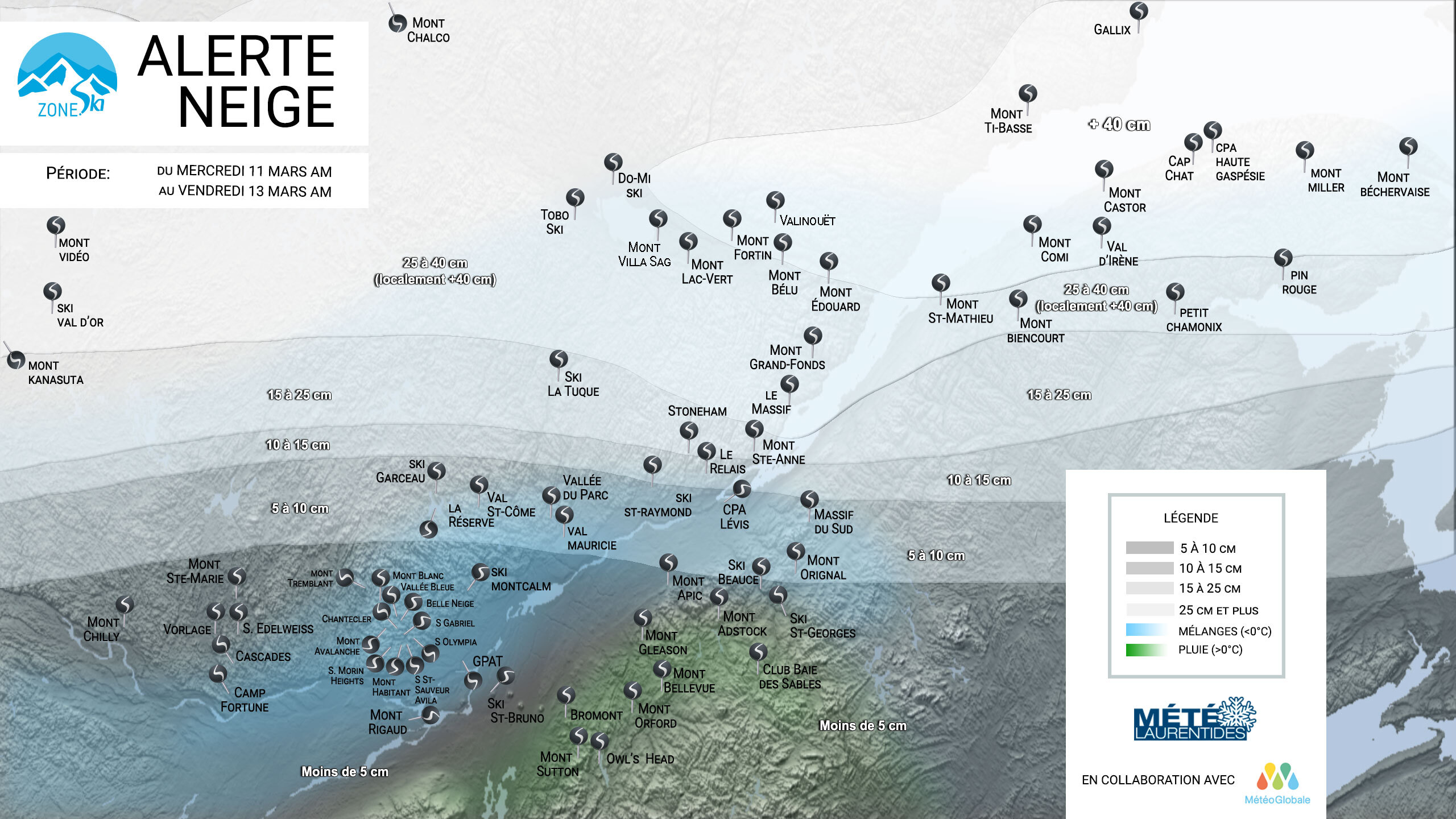 Zone.Ski et Météo Laurentides ne se tiennent aucunement responsable de toute conséquence que pourrait entraîner une prévision erronée.