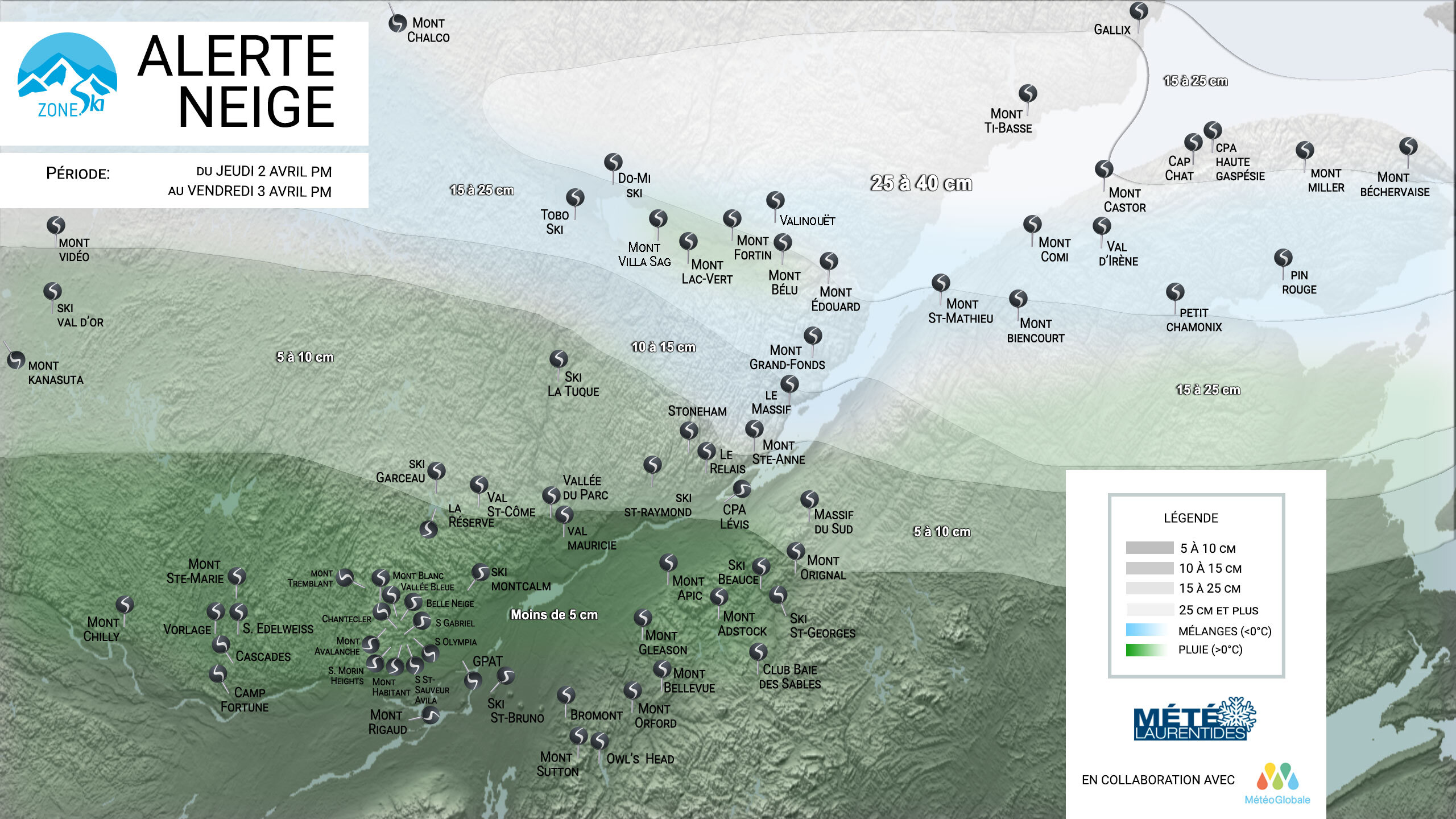 Zone.Ski et Météo Laurentides ne se tiennent aucunement responsable de toute conséquence que pourrait entraîner une prévision erronée.