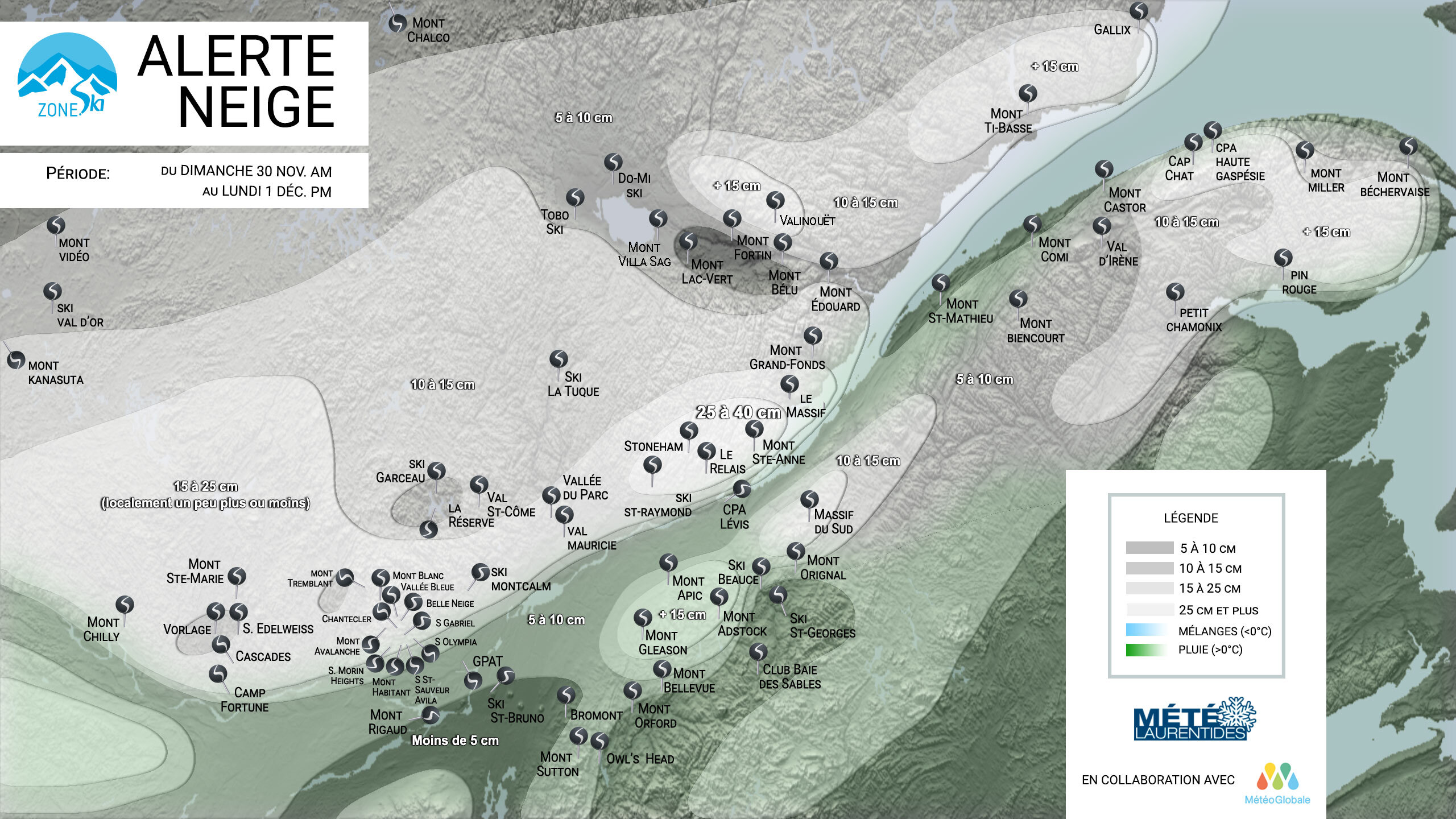 Zone.Ski et Météo Laurentides ne se tiennent aucunement responsable de toute conséquence que pourrait entraîner une prévision erronée.