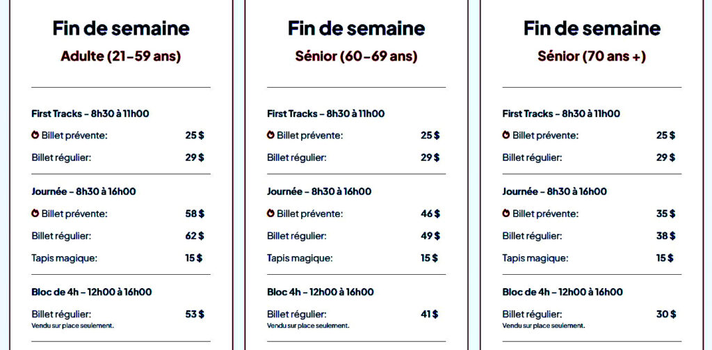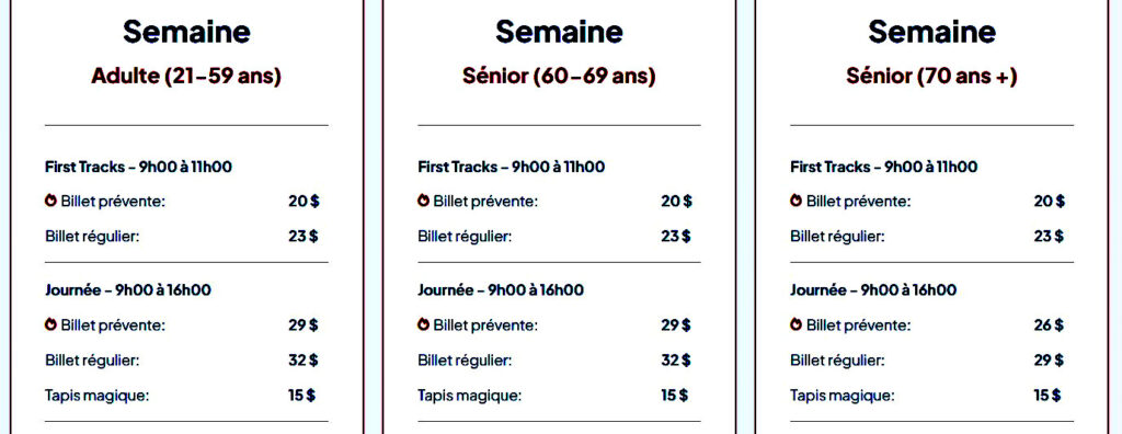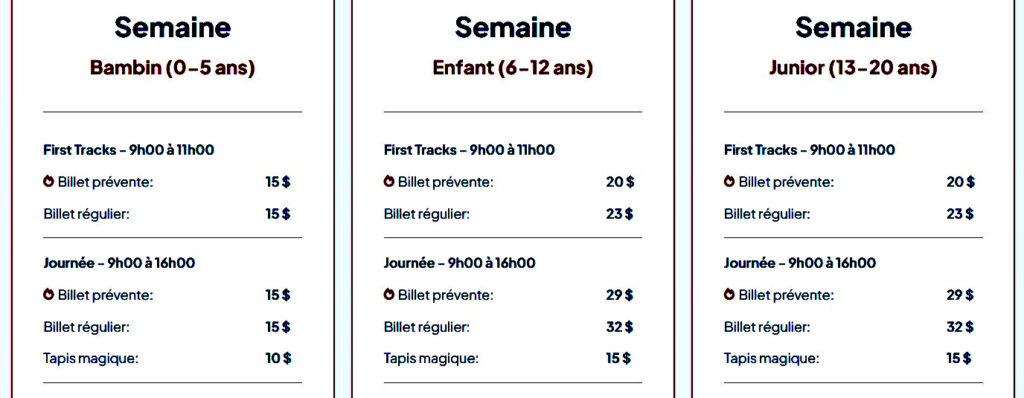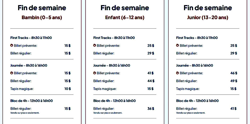 Non valide pendant les Fêtes et la relâche scolaire.