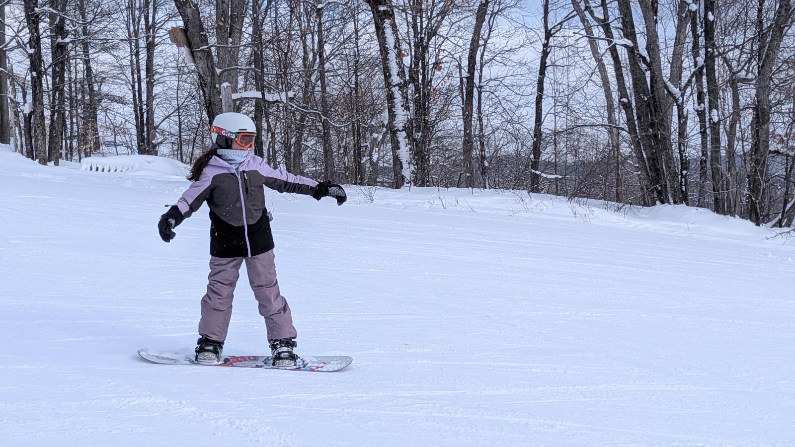 On pourrait croire qu’il n’y en a que pour les skieurs aujourd’hui, tant on ne voit pratiquement qu’eux. Mais attention, il y a bel et bien une poignée de « riders », dignes représentants de leur sport. Vu l’état parfait des pistes et de la couverture neigeuse tout en douceur, les planchistes évoluent sans dérapage (tsé, quand la neige est glacée, ce bruit infernal. Et b’en pas aujourd’hui!).