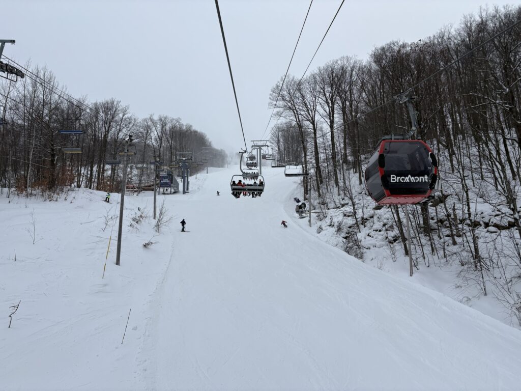 Première fin de semaine d’opérations à Bromont pour la saison 2025-2026. La station, équipée d’un système d’enneigement à la fine pointe de la technologie, offre déjà 11 pistes sur le versant du Village, ce qui se résume à 4 descentes différentes sur 4 pistes principales: Brome, Bromont, Bedford et Coupe du monde.