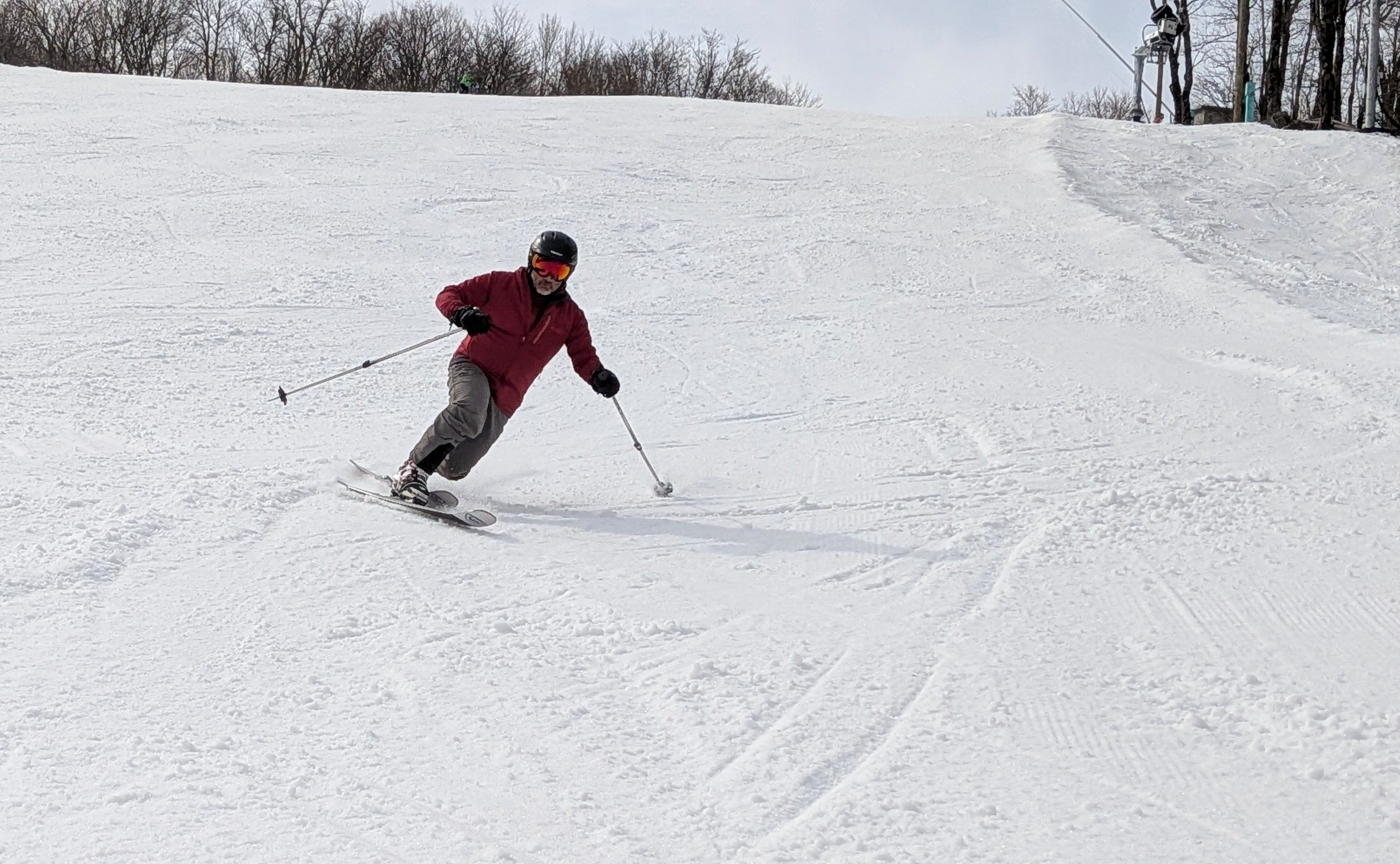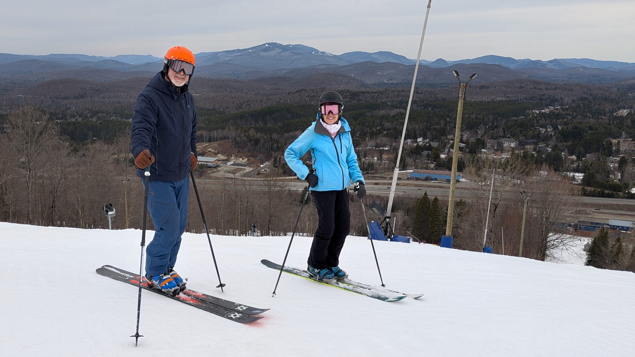 Mont Blanc tire sa révérence aujourd’hui. Ce chant du cygne marque une belle finale pour la saison 2025-26. La glisse est rapide, humide et pleine de bosses molles. Le ski de printemps, quoi! Nous ne sommes pas nombreux à en profiter, mais ceux et celles qui sont ici peuvent dire que ça vaut le déplacement. Nos cuisses endolories en témoignent! Ingrid et Andy ne s’en plaignent pas.