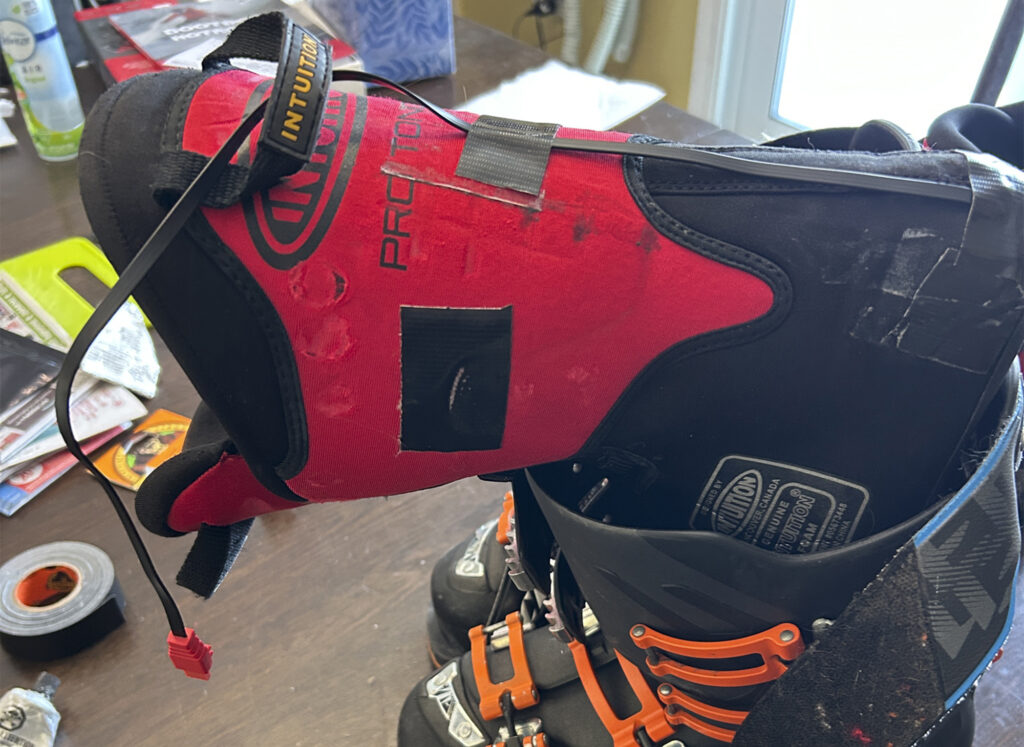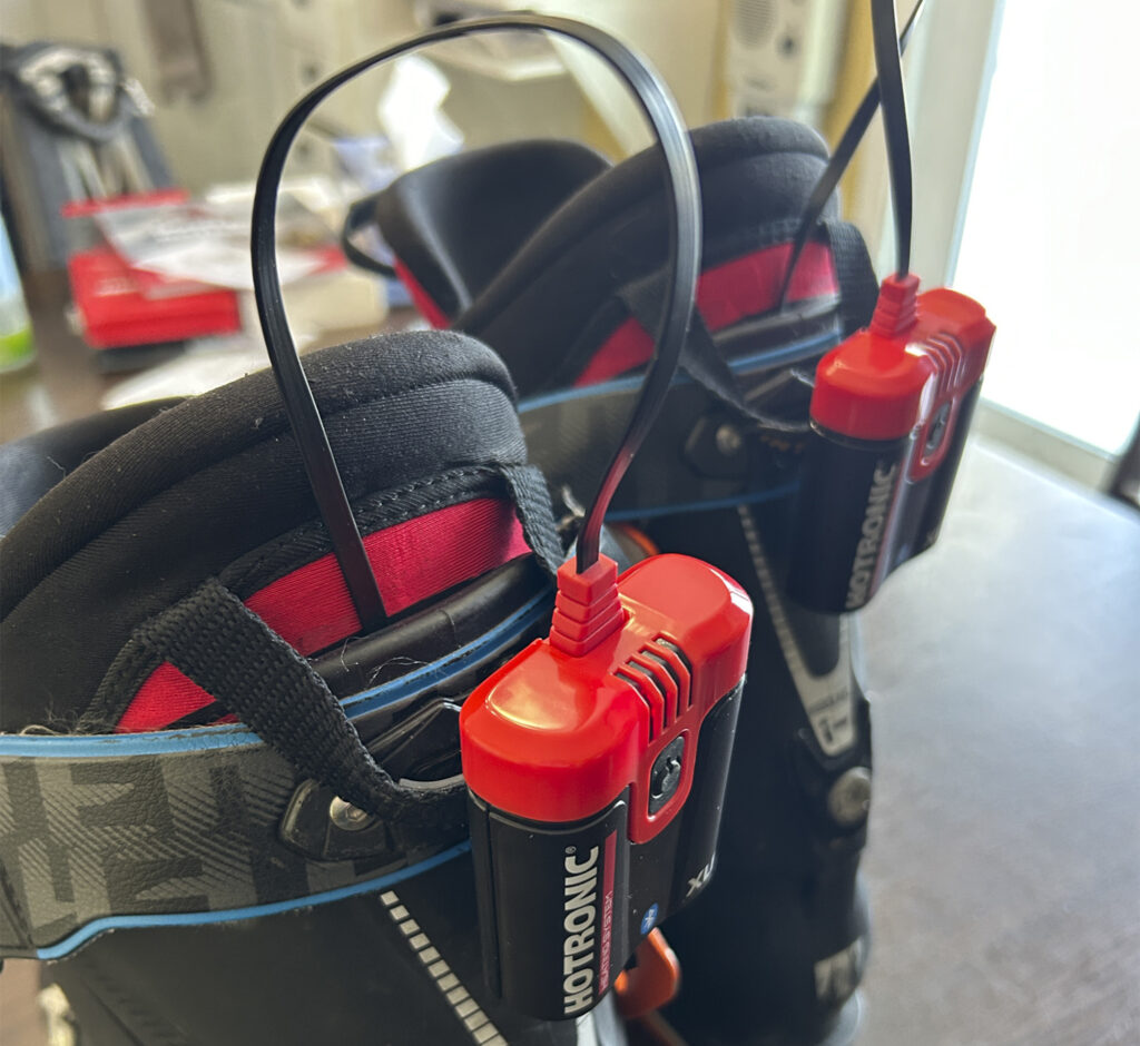 Une autre chose qui me fait plaisir et m’apporte du bonheur, c’est d’être confortable. Je suis fragile au froid et je suis un adepte des produits chauffants. J’ai des gants chauffants, un manteau chauffant que j’utilise peu et des semelles chauffantes que j’utilise tout le temps. Mes batteries étaient en fin de vie. Après plus de 4 ans de loyaux services, les piles au NiCad ont rendu l’âme. Ces piles devaient être rechargée l’été et on devait attendre qu’elles soient vides pour les recharger, afin qu’il n’y ait pas de mémoire qui s’installe dans la batterie. Je me suis gâté et j’ai changé la batterie pour des piles à lithium/ion qui n’ont pas besoin d’être vidées pour recharger et qu’ont peut charger avant de les remiser pour l’été. Je peux même ajuster l’intensité à partir de mon téléphone. Sur la dernière photos, vous voyez que je transporte mes bas dans le chausson et j’allume les semelles au minimum. J’ai les pieds au chaud dès le début. Une autre source de plaisir.