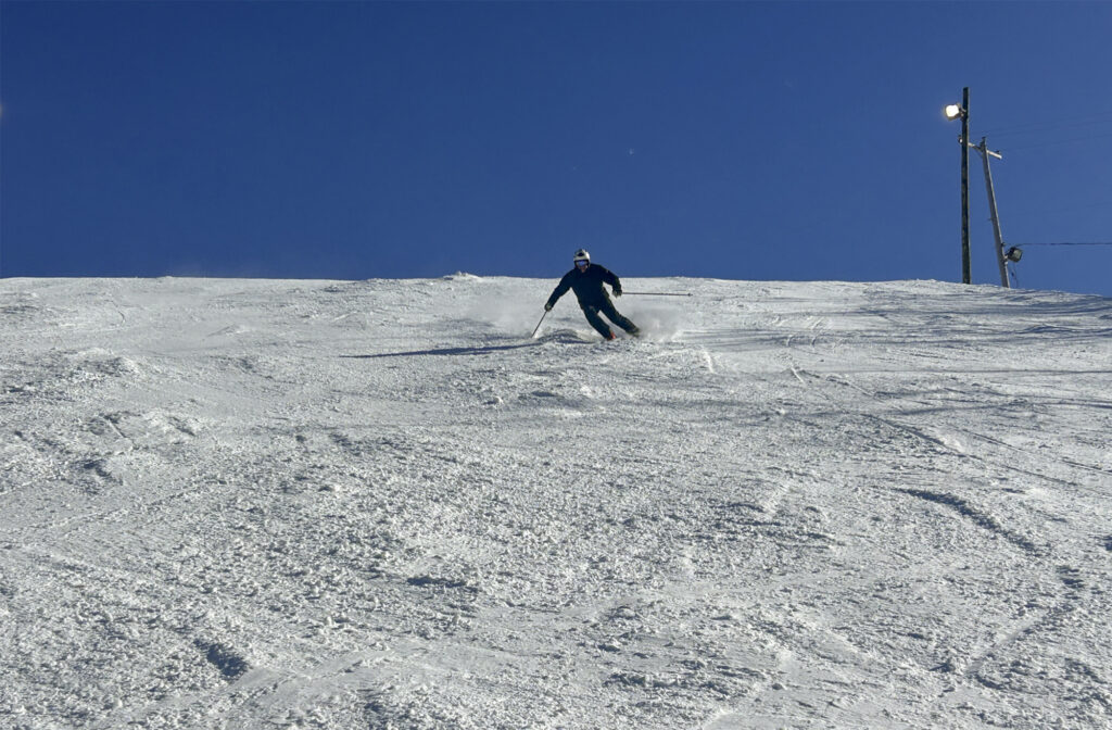 Nous avons skié les deux sommets et y avons trouvé encore une fois du plaisir. Sur le versant ouest, notre piste coup de cœur, la Suzanne-Proteau-Blais. Cette même piste qui a été le lieu des coupes du monde de ski de bosses où le grand Jean-Luc Brassard y a remporté des médailles d’or. Depuis, la piste a changé de vocation et est devenue bien lisse et damée à la perfection. Mais la piste est pentue à souhait.