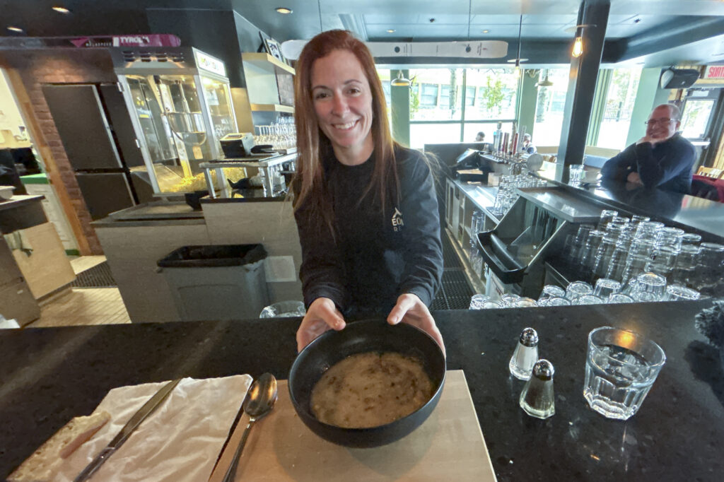 J’ai fait un peu plus d’une dizaine de descentes et suis rentré pour une soupe, histoire de me réchauffer un peu. Le Relais a agrandit le bar/restaurant puis un nouveau gestionnaire a pris la relève. J’ai mangé une excellente chaudrée de fruits de mer, servie dans un vrai bol avec le sourire de Stacy, la serveuse. Comble de bonheur, je n’ai pas eu besoin d’hypothéquer ma maison pour y manger.