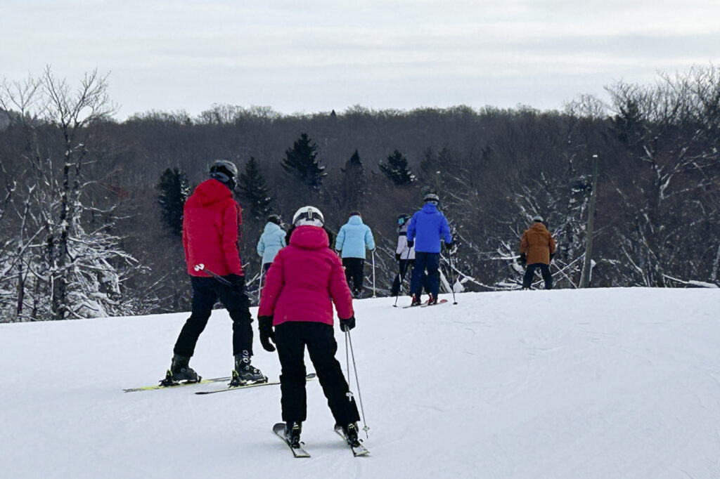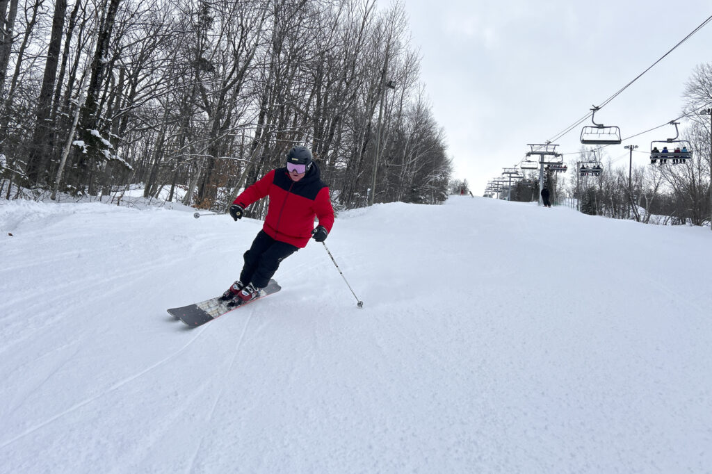 9h30 pile, la remontée Hexago a embarqué ses premiers clients. La station annonce 8 pistes ouvertes sur 33. En réalité, il y a 4 descentes possibles avec des bouts de pistes. La Familiale, une verte, La Mirador, une noire simple losange sous l’Hexago et le haut de Lac—Beauport virant vers le parc à neige et devenant La Docteur Pouliot et finalement La Pente-école.
