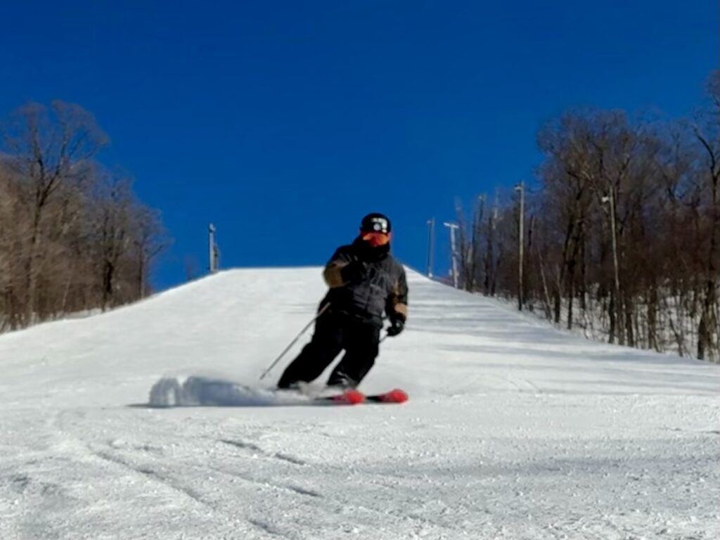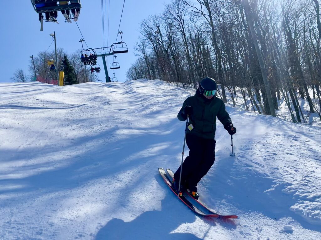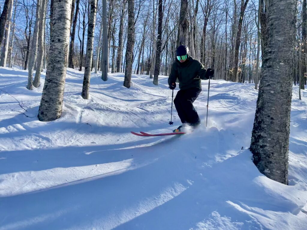 En après-midi, nous avons troqué nos skis de bosses et de sous-bois pour nos skis de slalom, puisque les pistes régulières étaient un pur délice à skier !