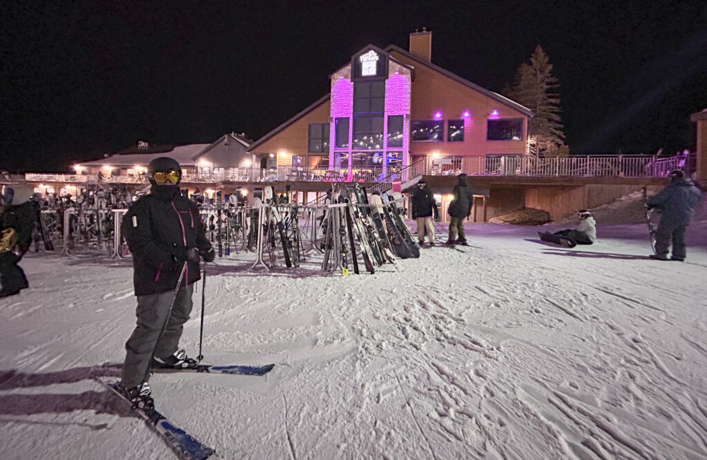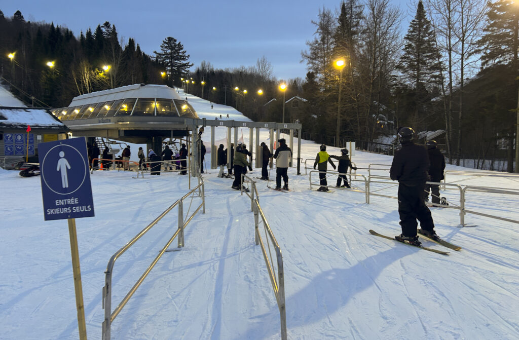 C’est la Relâche scolaire et ça fait plusieurs années que je n’ai pas skié le soir. La température était douce et nous avons pris la décision rapide d’aller skier. Quelle bonne idée. À notre arrivée vers 16h15, le chalet était bondé. Plusieurs familles terminaient leur journée et d’autres arrivaient pour la soirée.