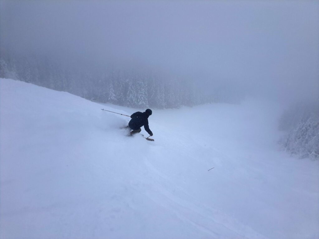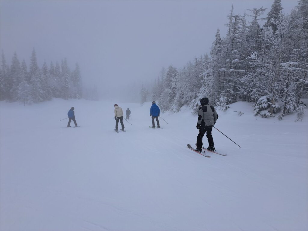 Côté météo, le matin s’est ouvert sous un brouillard léger, créant une ambiance mystérieuse et feutrée. Heureusement, celui-ci s’est peu à peu dissipé, laissant place à une météo très clémente, parfaite pour une journée de ski agréable, sans froid mordant ni vent dérangeant.