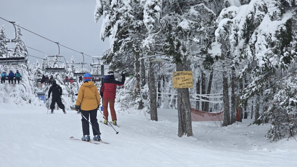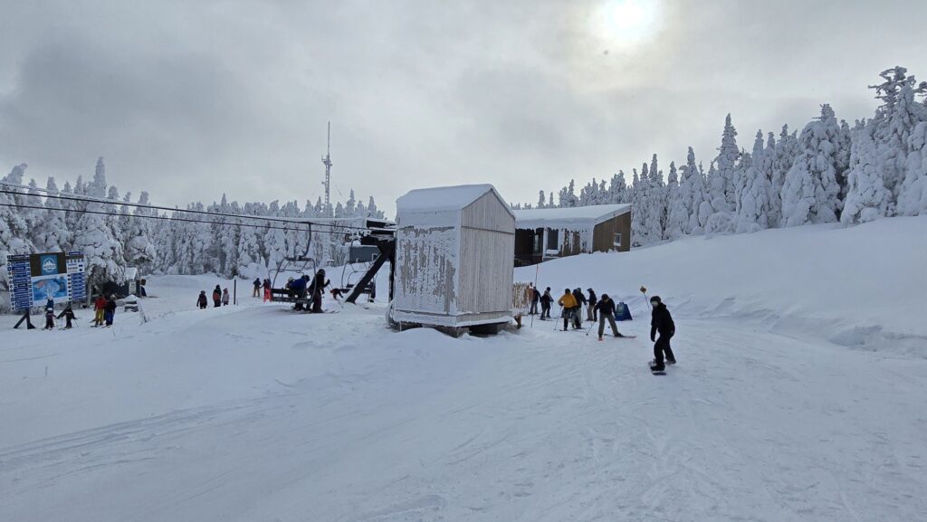 Une petite neige fine qui tombe au sommet nous donne l’essence de la station où on peut sonner le Gab-Phonique pour que la neige tombe ici au Septième-Ciel.