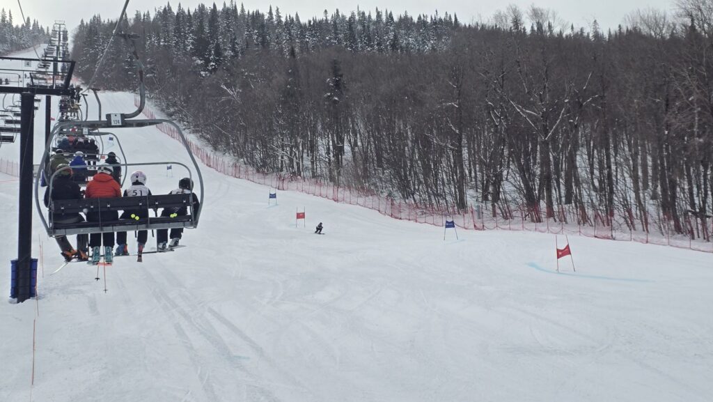 Nous assistons en direct du télésiège à la Course régionale du club de compétition.