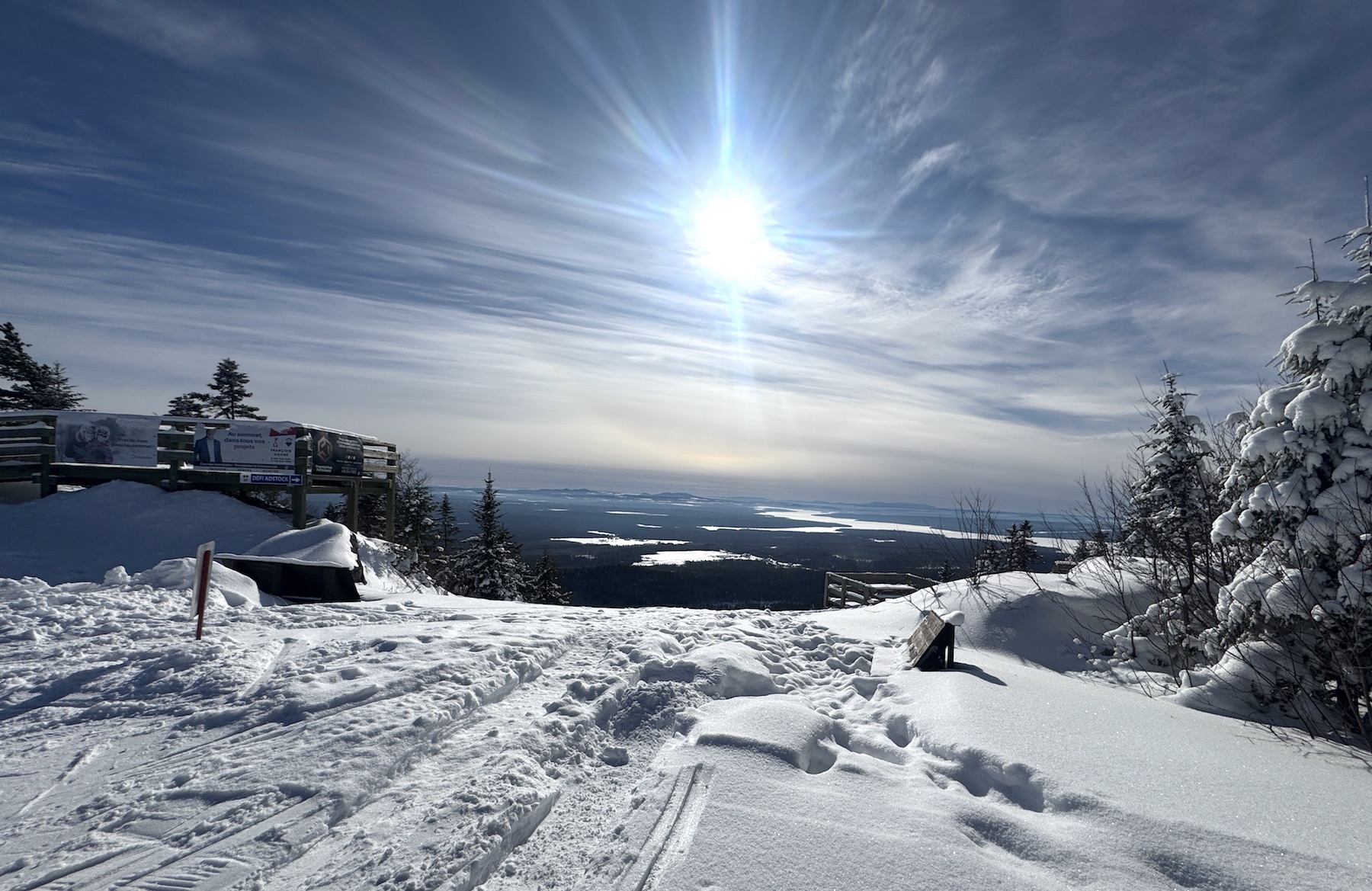 À mon départ de Bellechasse : -24 degrés. Ouf! À mon arrivée à la station : -14 degrés, du soleil, pas de vent, et du bonheur! N’y ayant pas mis les palettes depuis une douzaine d’années, j’avais oublié à quel point cette montagne est majestueuse! De la route 267, elle nous surprend déjà par sa forme brute et ses falaises de roches qui détonnent quelque peu avec les collines appalachiennes environnantes. En station, elle nous surprend par le parcours abrupte du télésiège et par l’inclinaison de certaines de ses pistes.