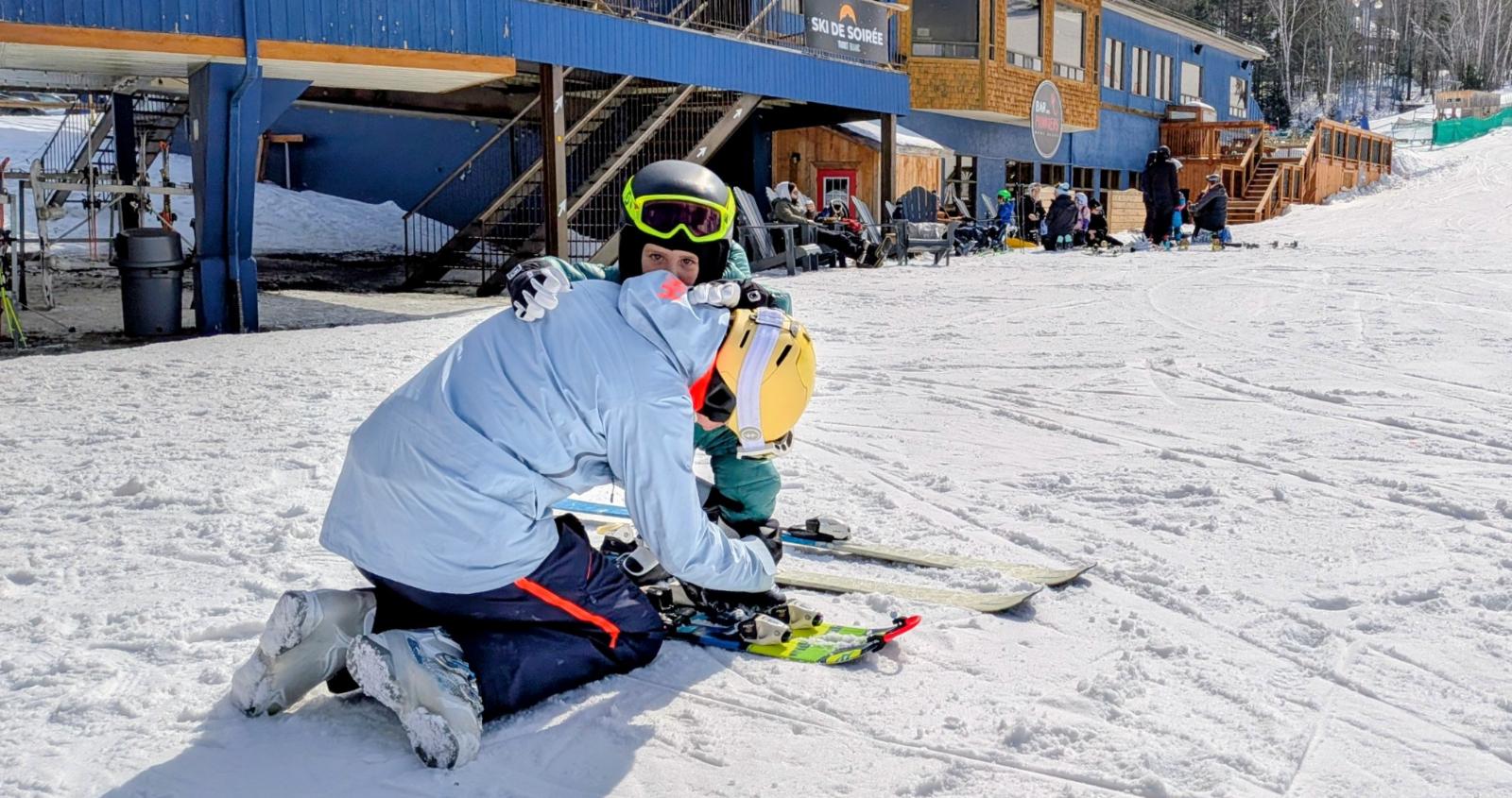 Ça avait pourtant commencé dans la grisaille et la lumière plate. Pas de contraste, mais un ciel et un sol qui se confondent. Moche, décourageant. Ça se présentait comme une journée de printemps avec un complexe d’infériorité. Mais, le bonheur solaire est vite arrivé à Mont Blanc. À la station dès 8h30, je ne quitte qu’à 16h00 tant la glisse est sublime. Je veux tellement continuer, sauf que ce sont mes cuisses de télémarkeur qui abdiquent.