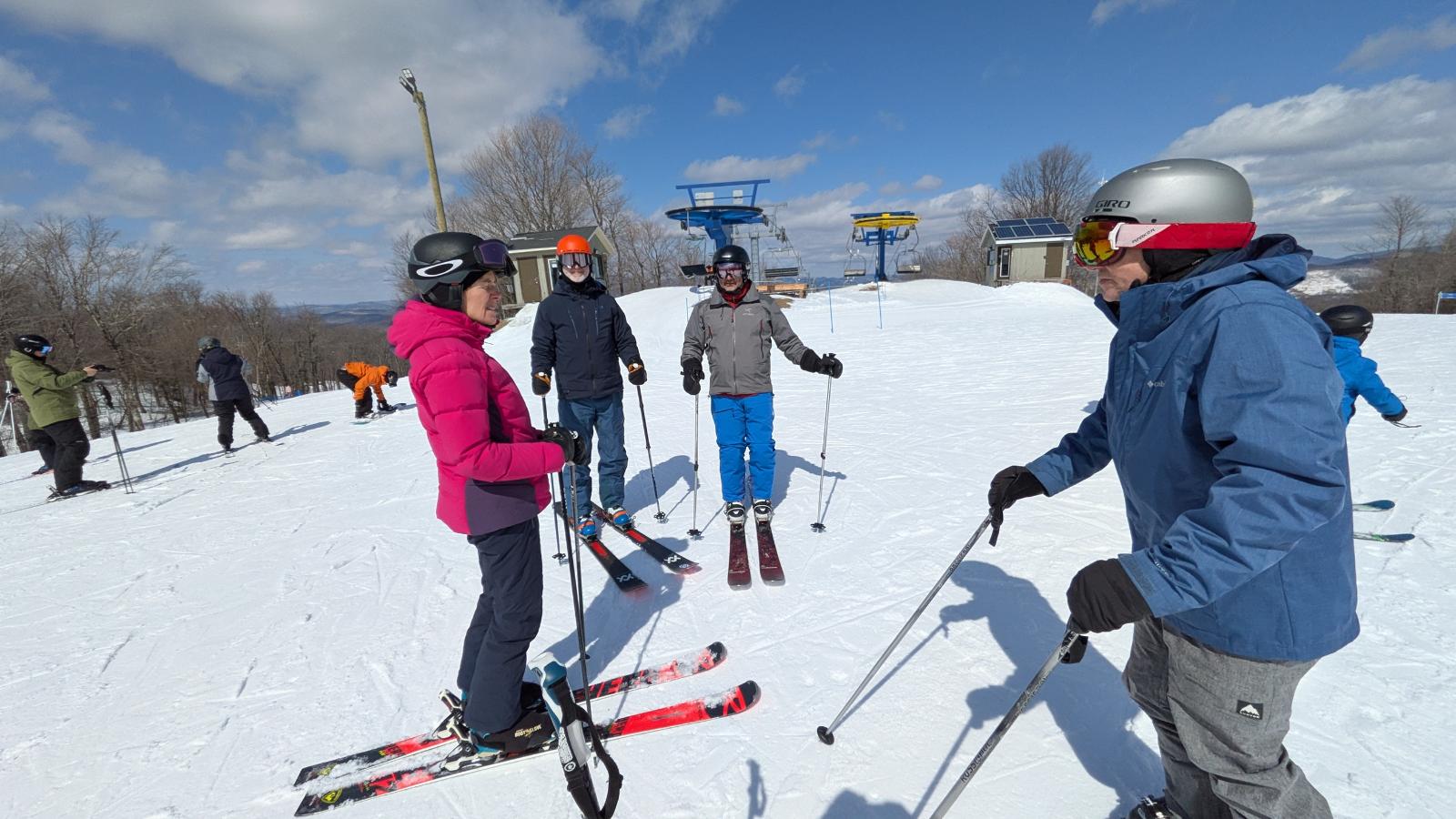 La joyeuse bande, sans le chroniqueur qui doit bien faire son boulot derrière l’appareil photo, se demande dans quelle direction aller. Les pistes sont toutes magnifiques; ne reste à décider si nous allons sur le versant nord ou si nous continuons encore un peu sur le versant principal. Il n’y a pas de mauvaise décision. Surveillez le site web de la station pour les heures et les dates d’ouverture. Non, ce n’est pas fini!