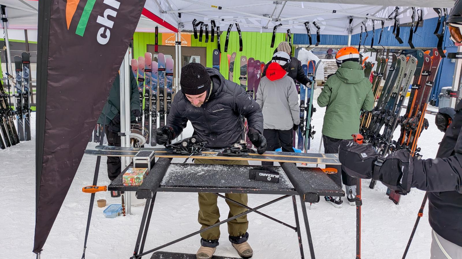 C’est jour de démo. Comme de fait, j’y suis! Je ne rate guère d’occasions de tester de nouveaux skis. Une fois de plus, les techniciens sur place saisissent rapidement ce que l’on cherche. Ils savent nous conseiller et nous mettre sous les bottes les skis les mieux adaptés à notre style de glisse. Seuls deux fabricants sont représentés aujourd’hui. Malgré tout, j’ai encore une fois un coup de coeur. Si seulement, je pouvais avoir 5-6 paires de ski…