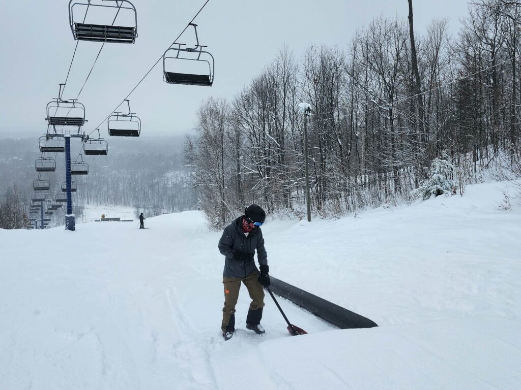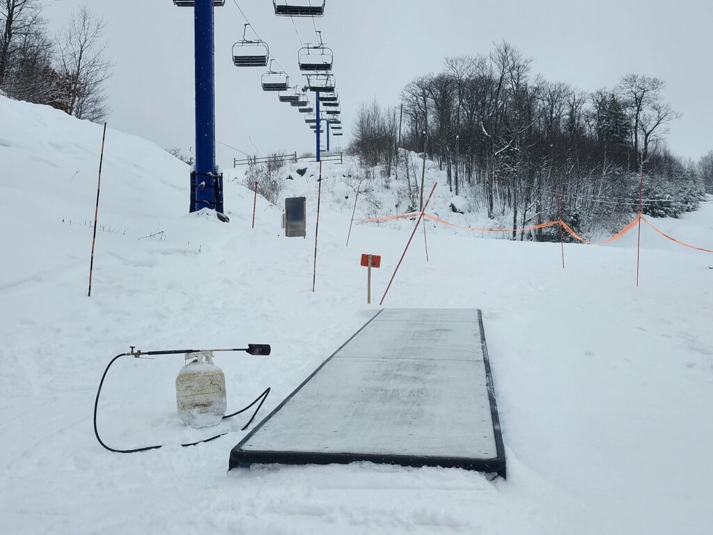 En ce début de saison, rien n’est laissé au hasard. Dans la piste Promenade, un employé utilisait même une torche alimentée par une bonbonne de gaz pour faire fondre la glace sur les coins des modules du parc à neige. Un souci du détail impressionnant, absolument rien n’est laissé au hasard.