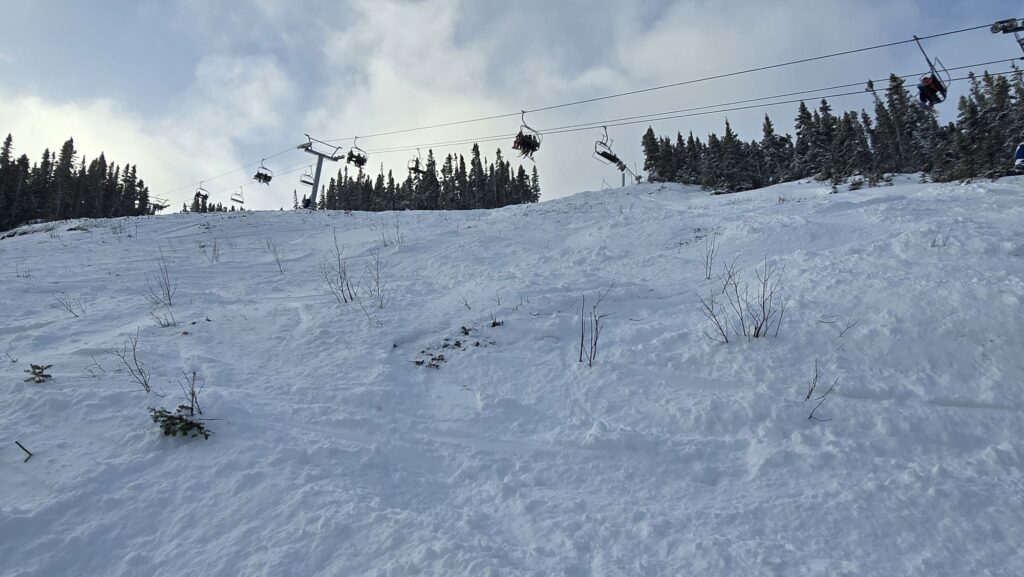 En arrivant à la station, j’ai eu un doute de pouvoir tout surfer car les pentes manquent un peu de neige pour cacher tous les fouets.