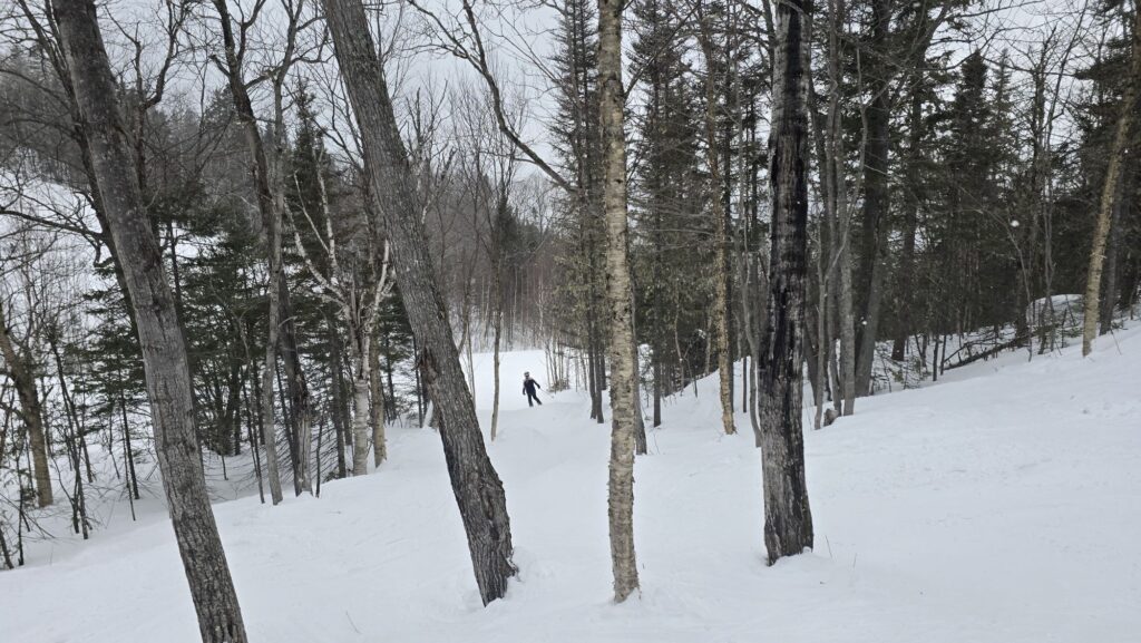 Mon ami m’a fait découvrir le sous-bois La Reneegade parce que lui, il se faufile partout en ski. Moi qui pensais avoir tout vu, j’ai toujours passé tout droit devant son entrée!