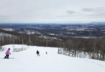 Le coeur de Dame Nature balance entre la bruine, la bruine verglaçante, le flocon mouillé et le flocon collant… La couverture de neige sur les pistes est mince, mais il y en a tout juste assez pour skier.