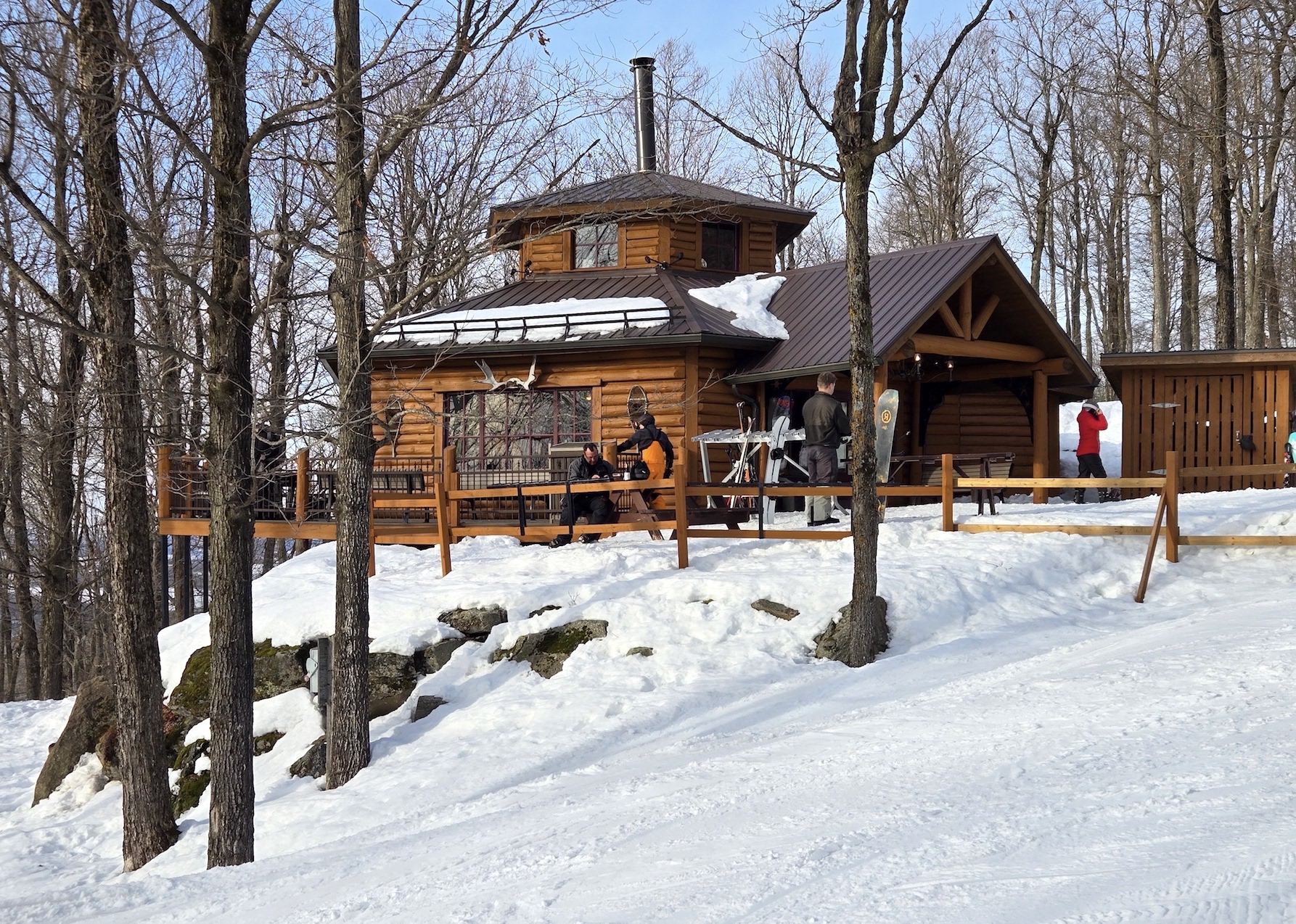 Visiter Gleason sans s’arrêter au Chalet du Sommet serait un crime. Mes filles y ont savouré un chocolat chaud avec de la crème fouettée, ma conjointe un gin sans alcool, et moi un bon café moka.