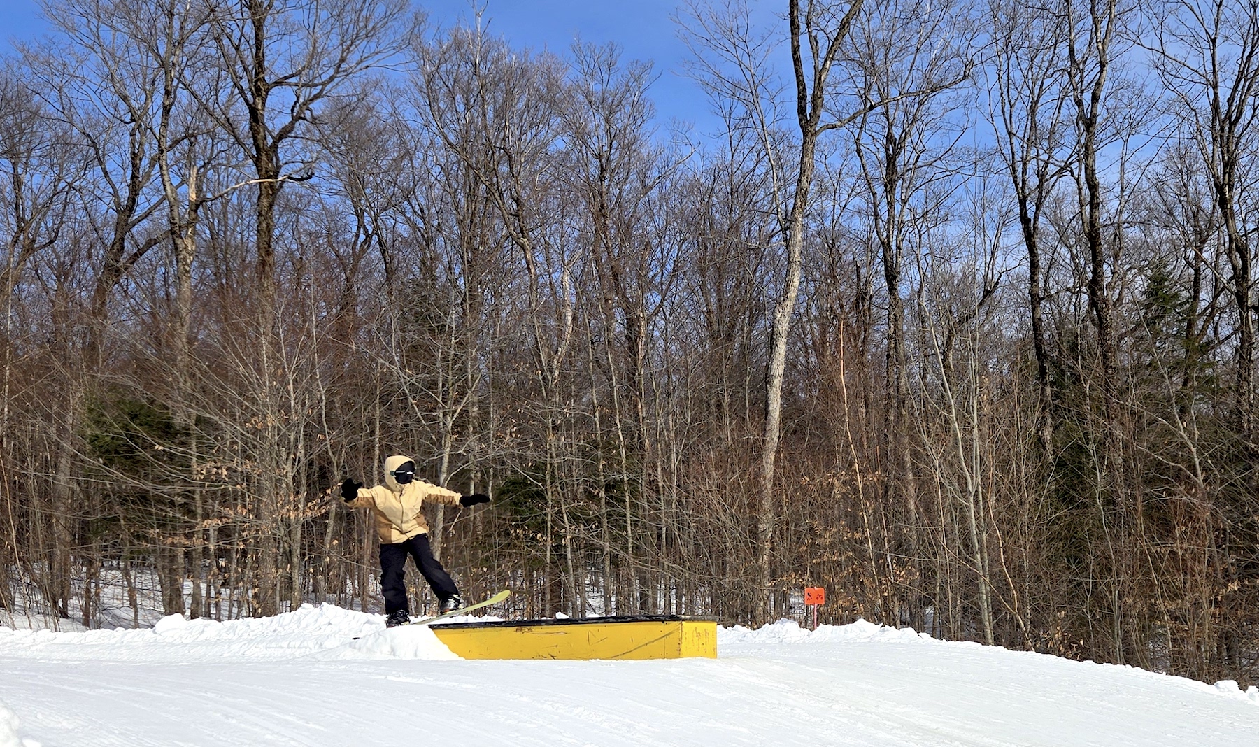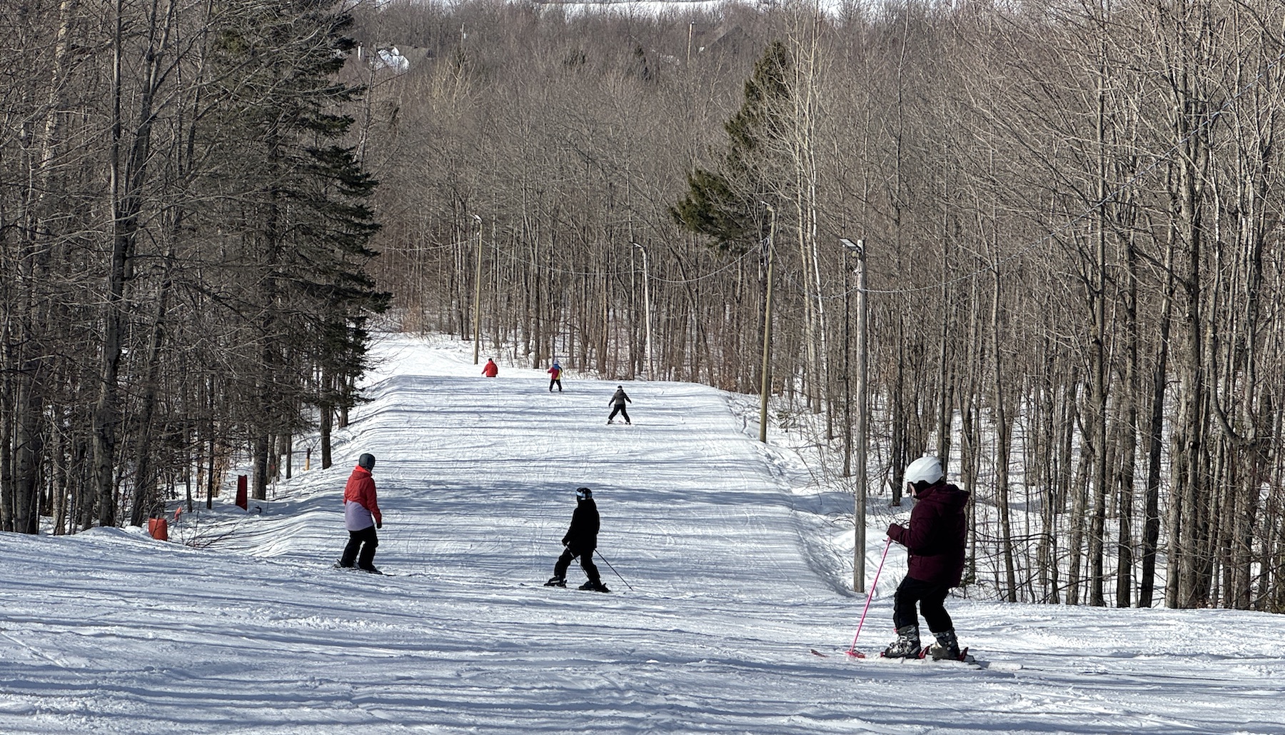 Le parc à neige aménagé dans la section du haut de la piste Pierre-Ling a fait bien des heureux en ce vendredi de la relâche scolaire! Les jeunes (et moins jeunes) skieurs et planchistes s’en donnaient à coeur joie. Idem dans la piste de skicross/boardercross située dans la piste Victoriaville, sous le télésiège de droite sur la carte des pistes.