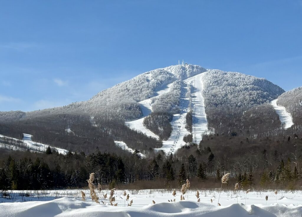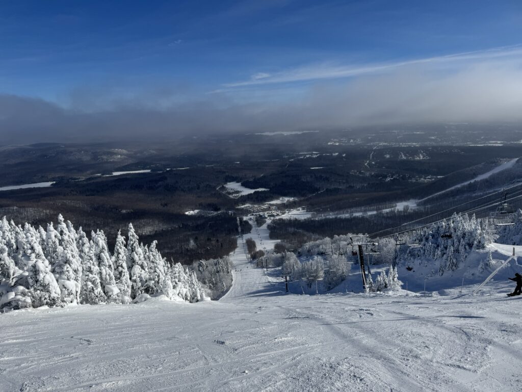 L’orientation du sommet Orford étant face à l’est, il faut arriver tôt pour profiter du soleil dans les pistes damées.