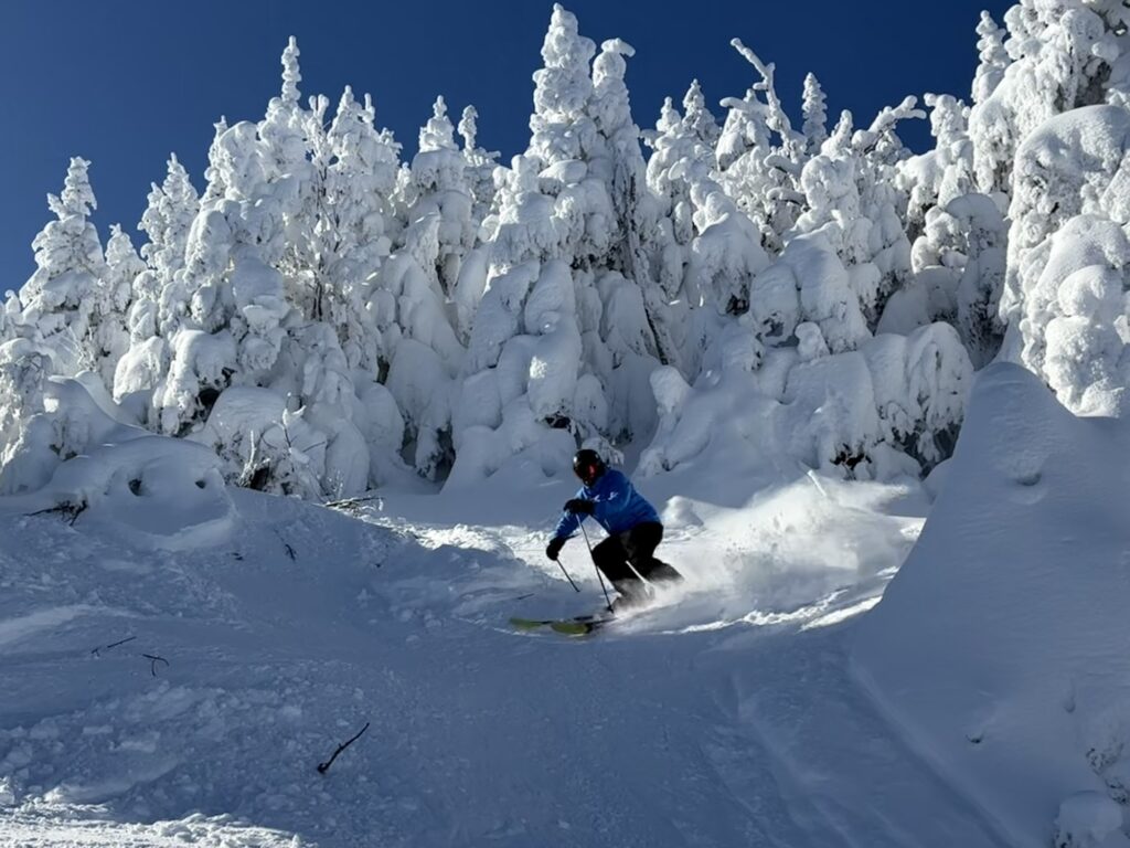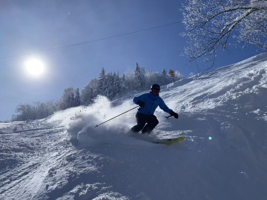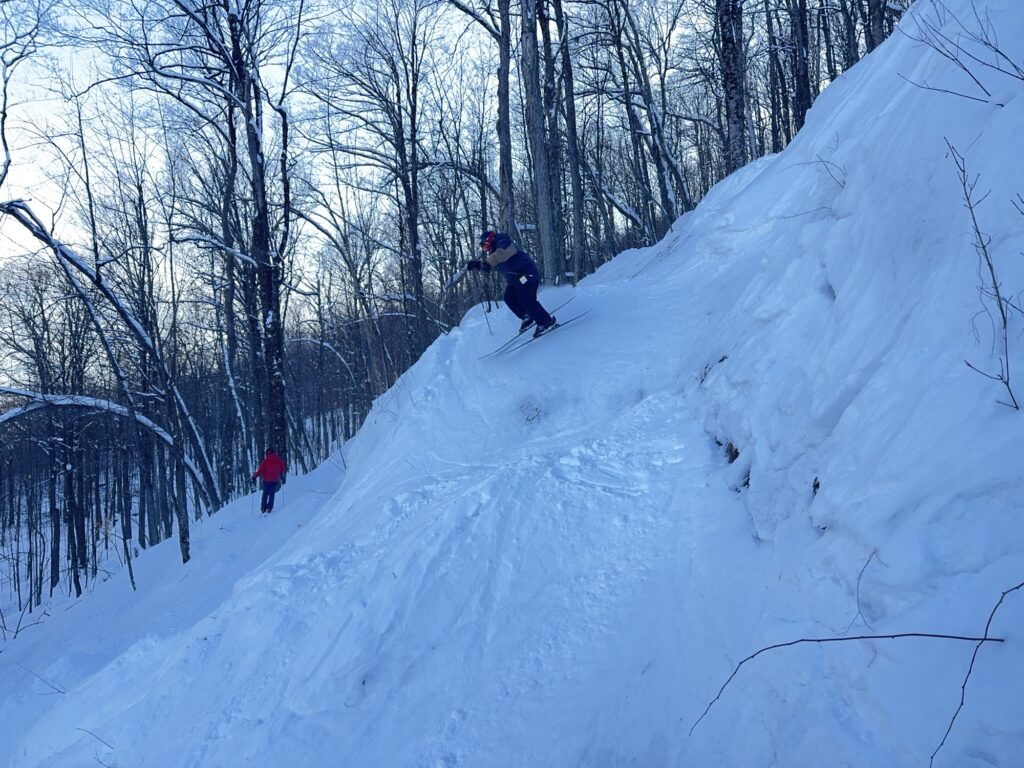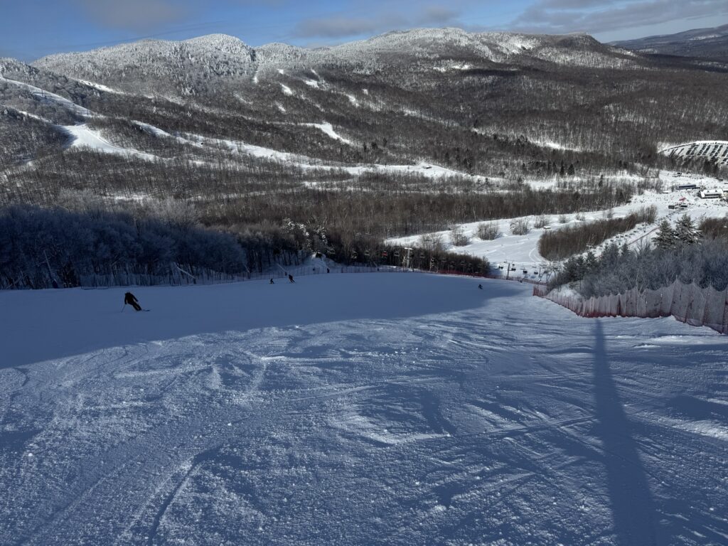 Les conditions y étaient de neige nouvelle, damée et compactée par le froid avec une base durcie mais qui restait la plupart du temps enfouie. Avec des skis raides et longs, ces pistes sont parmi les plus intéressantes des Cantons-de-l’Est et permettent un carving très agressif.