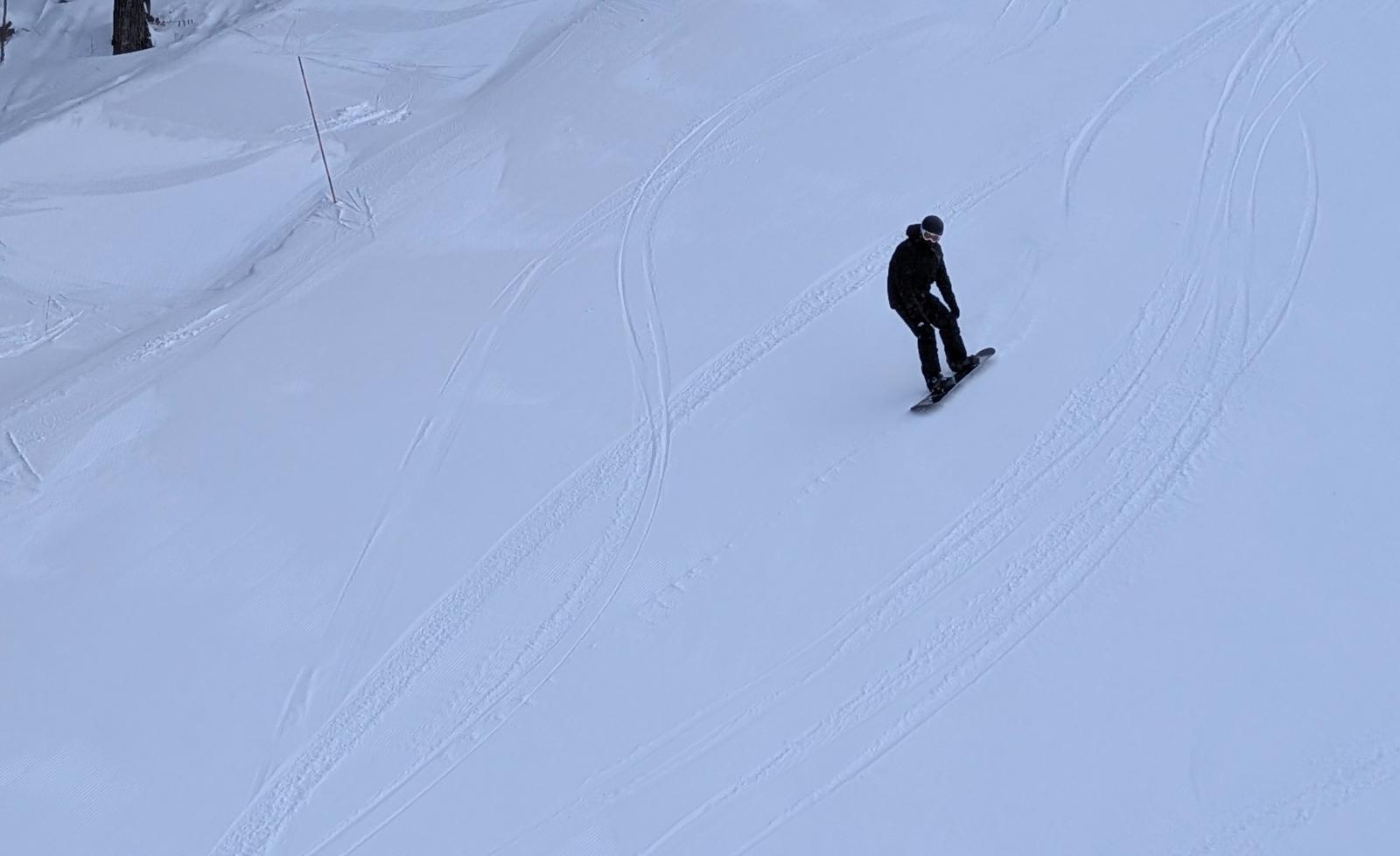 Un timide soleil nous accueille ce matin. À -18 degrés et avec un vent soutenu, on peut dire que l’hiver joue aux bras. Cependant, les précipitations de la nuit passée (5 centimètres) tiennent leur promesse en nous offrant des conditions superbes. Malgré un damage digne de ce nom, des congères posent défi et créent des moments surprises lors des descentes. L’achalandage est plutôt calme pour un samedi; le froid annoncé (telle une catastrophe!) en aura intimidé plus d’un. Tant pis pour eux! Bien habillé, le temps est très endurable.
