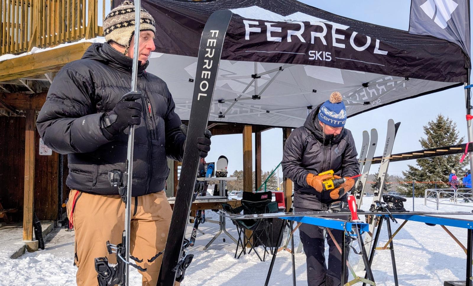 Les skis québécois FERREOL sont mis à la disposition des skieurs pour des essais gratuits. Marie-Julie et son collègue sont les deux excellents techniciens qui nous accompagnent dans le choix des skis que nous essayons. Alors que les grands fabricants européens et américains offrent souvent une pléthore de modèles qui peuvent rendre le choix confus et redondant, FERREOL mise sur une sélection limitée mais avec des modèles aux « personnalités » uniques. Ainsi, pas de doublon ni d’entre-deux. Mon coup de coeur de la saison (car je fréquente régulièrement les démos) est sans contredit le Explo 86. Et pour couper serré et creux, le SL-Free 74 ne donne pas sa place!