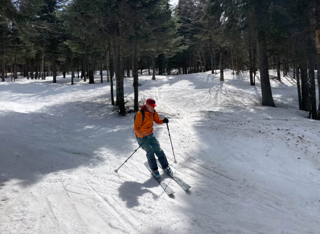 Notre échauffement aujourd’hui: Sidney-Dawes et Vital-Roy, des sous-bois du versant Nord. La couverture neigeuse est presque impeccable, et l’ombre des arbres garantit une meilleure glisse que dans les endroits plus exposés au soleil.