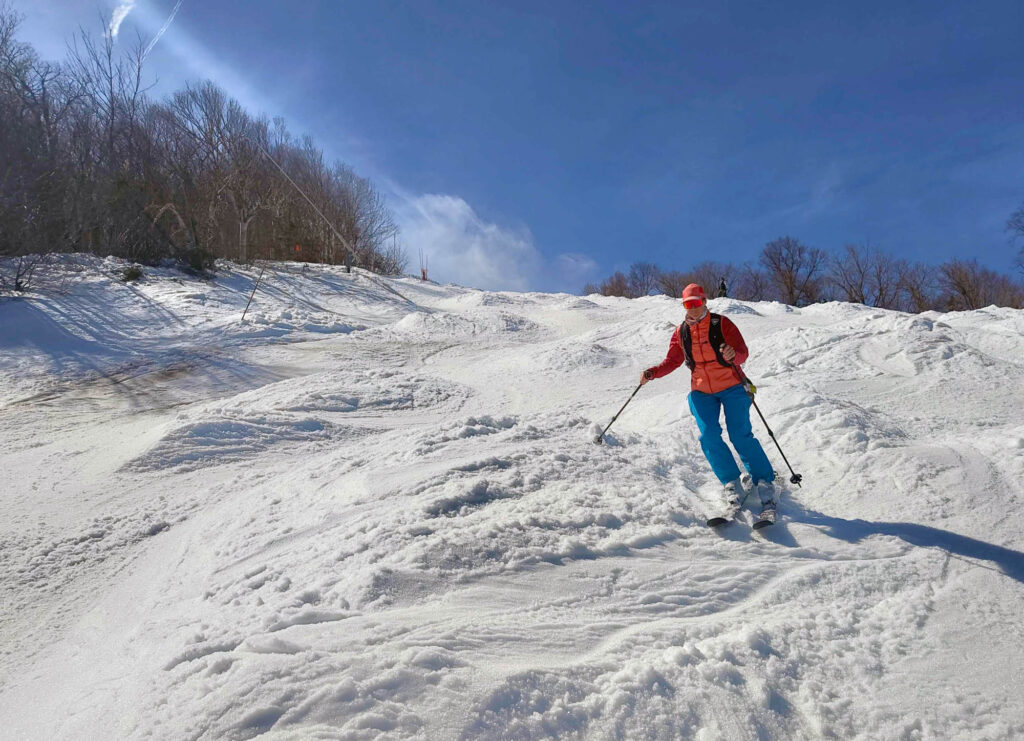 – tu oses des pistes qui t’intimident habituellement, puisque tes jambes sont entrainées et que la glisse est plus « lente » (photo d’entête: on a osé L’Espoir!)