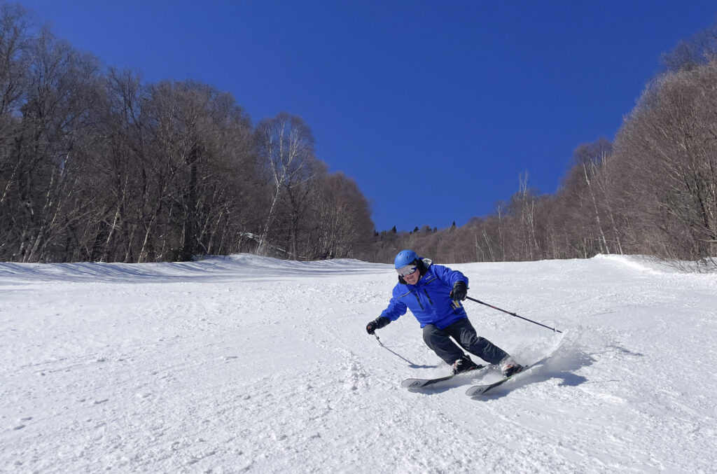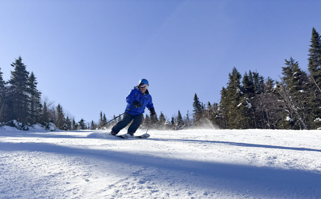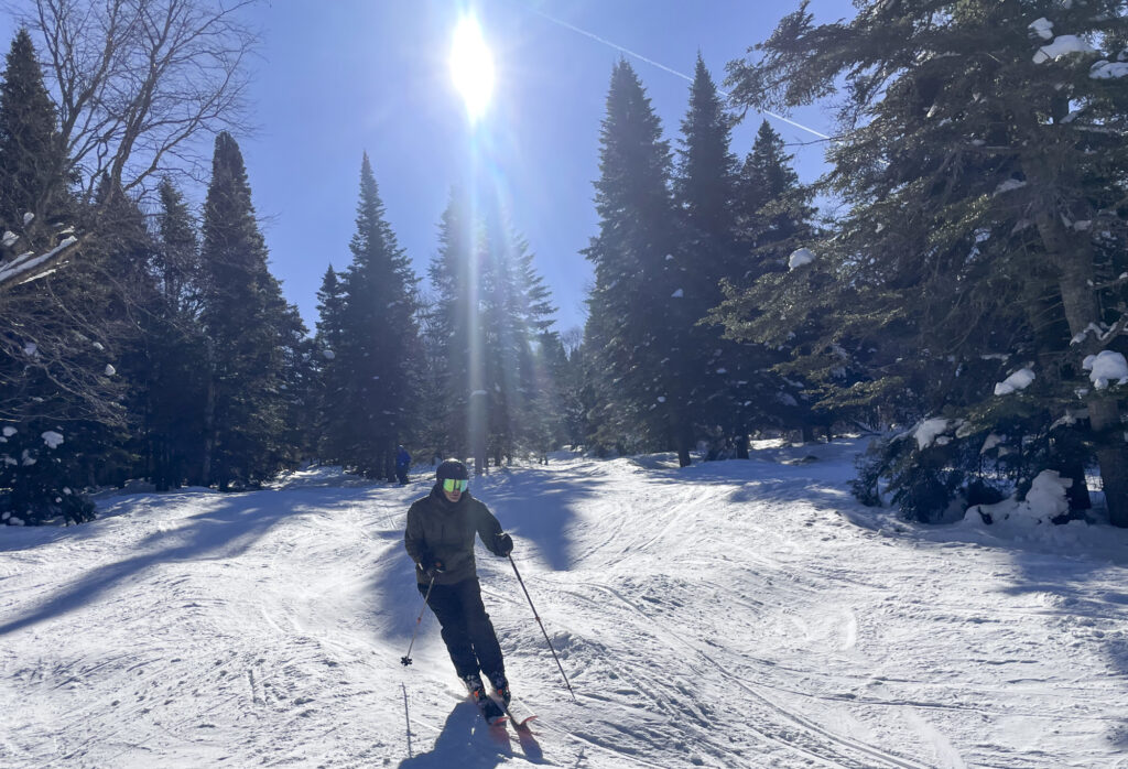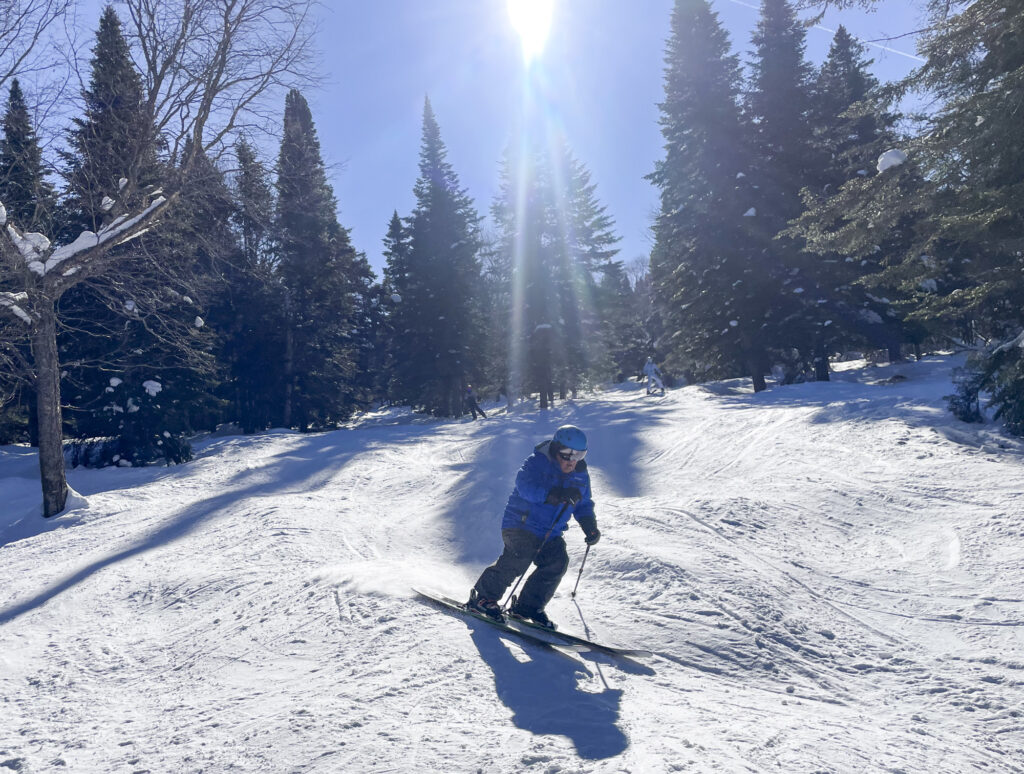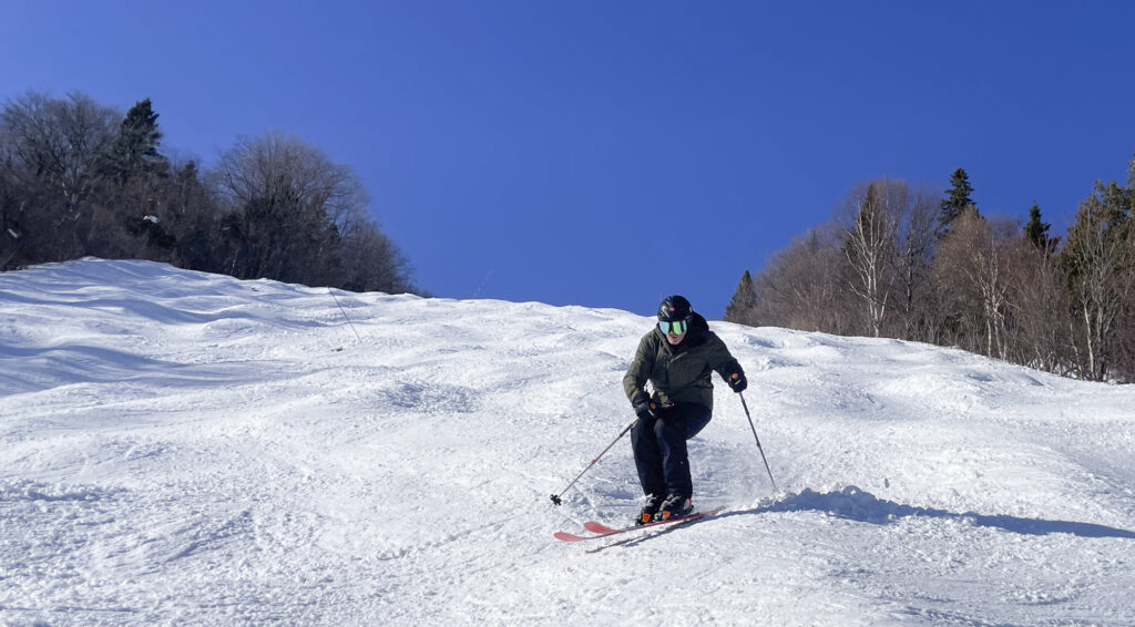 Mes pistes favorites aujourd’hui ont été L’Espoir et la Beaupré/Court-Vallon. Le ciel était d’un bleu intense tout au long de la journée. Maxime a réussi une très belle photo de moi en action dans L’Espoir. Merci Max.
