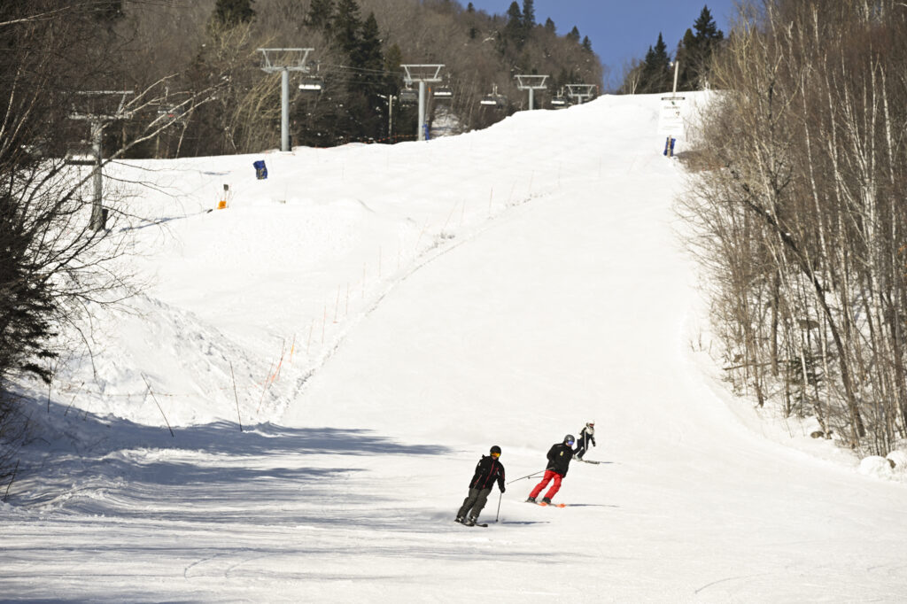 En semaine, c’est le bonheur. L’achalandage est minime et l’attente aux remontées est nulle. Les pistes sont restées très belles toute la journée, avec un beau damé. Nous avons skié la Quanik, la Paradeuse, la Printanière, la Première neige, la Mélanie-Turgeon, la Grande-Allée et l’Express, puis un retour au nord avant une pause au chalet du sommet pour une soupe.