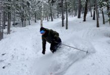 Les pistes ici sont larges et permettent de grands virages. C’est vrai qu’il fallait être bien couvert pour en profiter aujourd’hui, la récompense était d’avoir les pistes à nous seuls!