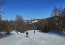 Il ne fallait pas avoir peur du froid aujourd’hui au Mont SUTTON! Le mercure n’a pas dépassé les -20 degrés mais à faire des pistes à bosses et sous-bois, ça réchauffe bien!
