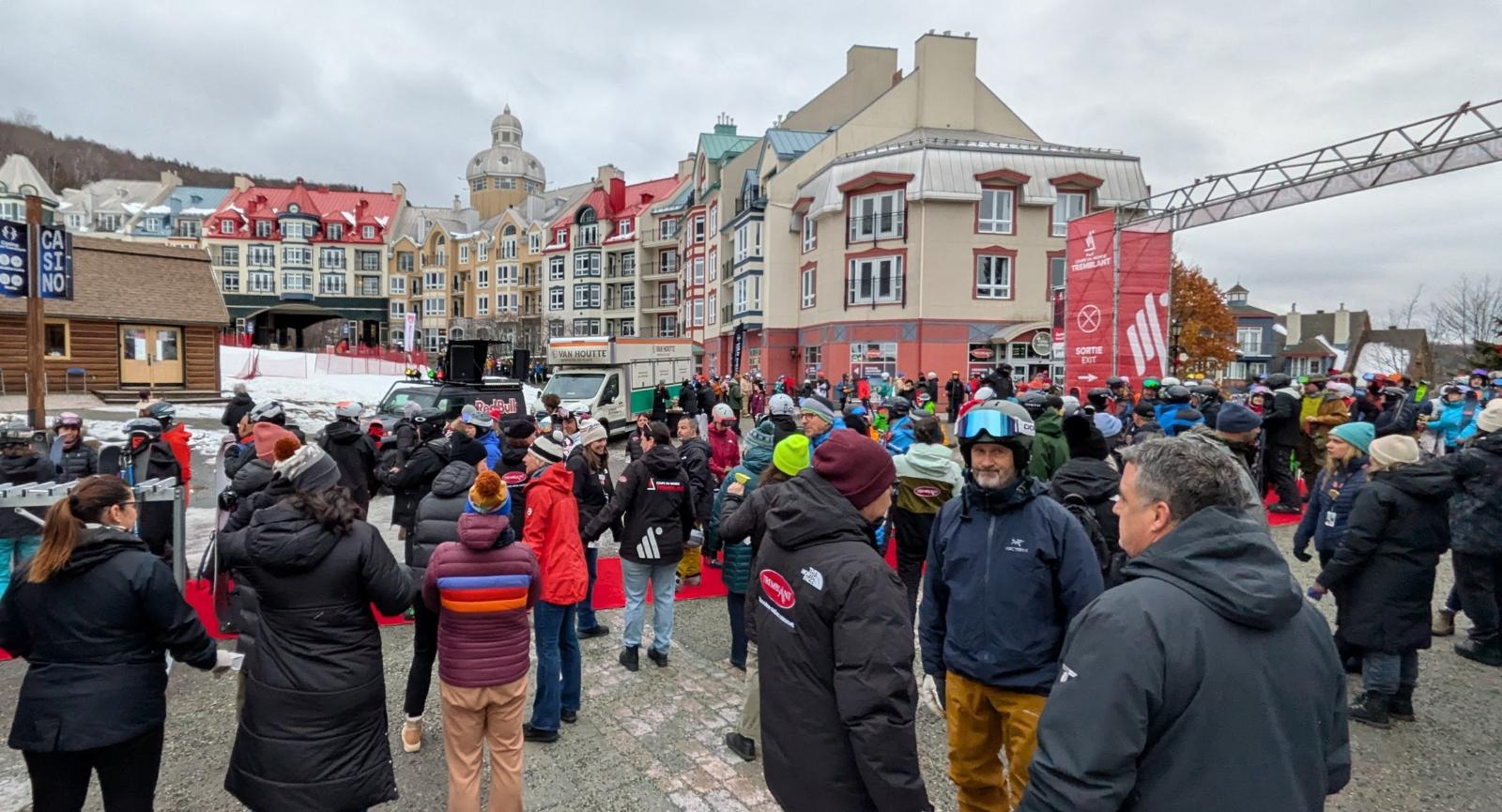 Nous sommes des centaines à danser sur place en attendant le signal de départ. La fébrilité est palpable, autant pour les dizaines d’employés présents afin de nous accueillir (tout en décibels!) que pour les skieurs et planchistes. On vient bien entendu du Québec, mais aussi de l’Ontario, des États-Unis et même de l’Europe pour ce rite annuel.