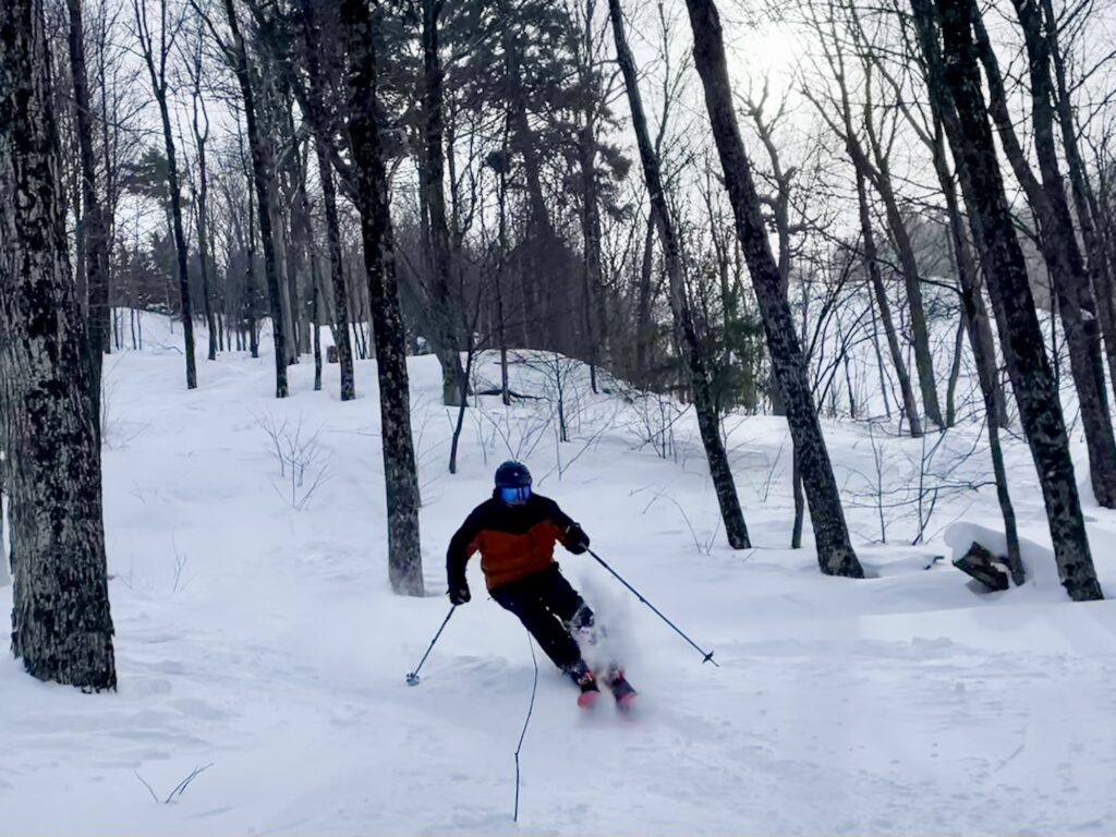 En skiant les sous-bois d’une grosse montagne comme Owl’s Head!
