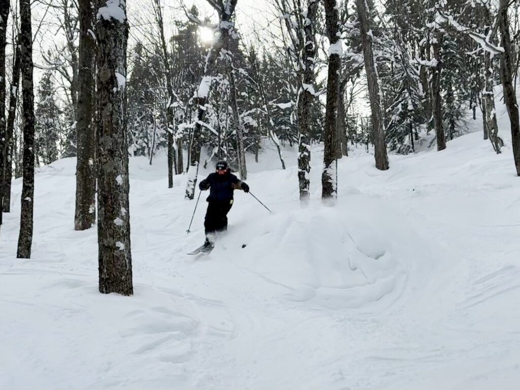 Même s’il n’est tombé que 5 cm de nouvelle neige durant la nuit, les sous-bois étaient en assez bonnes conditions. Il fallait toutefois être vigilant dans le sous-bois Kabool, incliné et escarpé, qui comportait quelques obstacles naturels. Une bonne tempête lui ferait d’ailleurs grandement du bien!