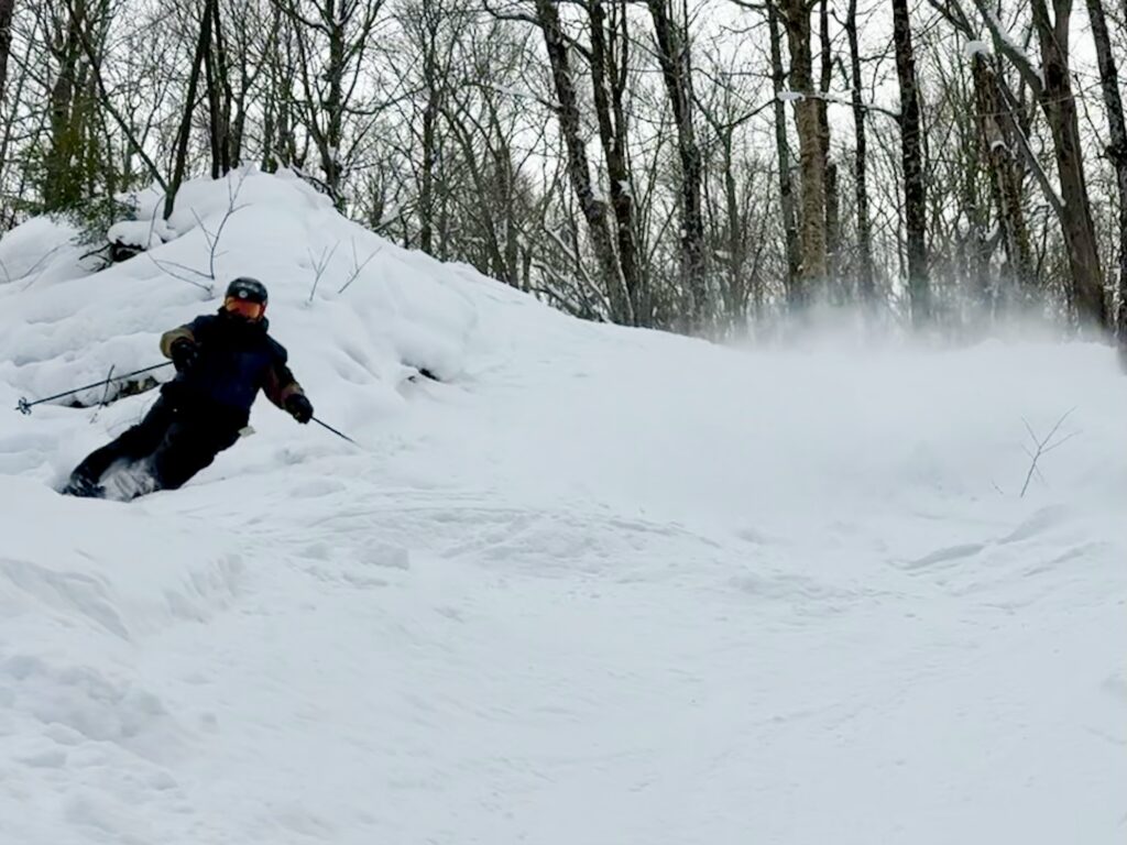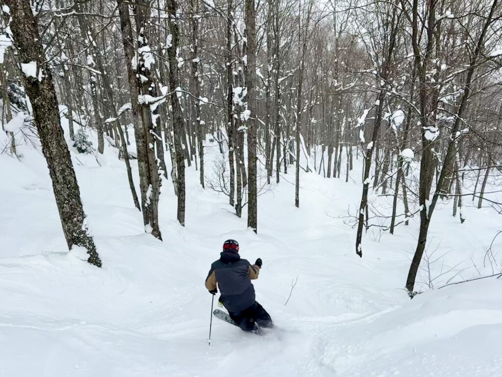 À part notre première descente dans la très longue piste Lilly’s Leap, nous avons passé la journée à skier tous les sous-bois de cette magnifique montagne de 540 mètres de dénivelé!